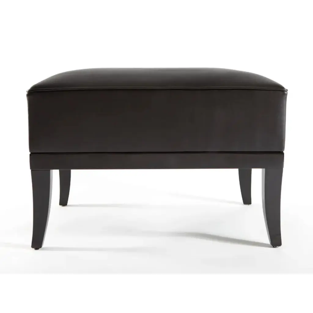 Monsieur T Ottoman by MunnaDimensions: D 52 x W 65 x H 46 cm. SH: 46 cm.Materials: Solid wood, foam, nickel, and leather.Available in all Munna fabrics except Wild Silk. Available in client’s ownmaterial. Available upholstered, Rosewood or Ebony veneer, solid Walnut, Wengé stain, or lacquer in all RAL colors, in matt or gloss. Fire retardant interlining is available on request. Handmade in Porto. Please contact us.Established in Porto in 2008, Munna is a furniture design brand renowned for creating handmade upholstery with unmatched craftsmanship, seamlessly blending noble materials and timeless design, for both commercial and residential projects.Made by hand in Porto, Munna’s pieces honor the profound heritage of craftsmanship, while drawing inspiration from history’s most influential artistic periods. Munna’s pieces are made of the finest fabrics such as cotton velvet, twill, leather, and silk; the finest wood veneers, such as ebony, walnut, and rosewood; sumptuous gold, silver, and copper leaves, metal details in brass, nickel, and copper, and superior lacquers.