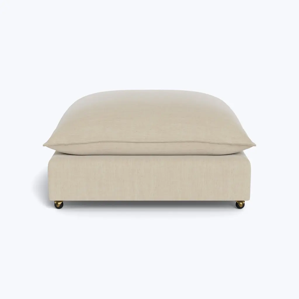 The Montauk Ottoman, exclusively from ABC Carpet & Home, offers the perfect combination of style, comfort, and versatility. Whether used as a footrest, additional seating, or even a casual coffee table, this ottoman adds a relaxed yet refined touch to any room, making it an essential companion to the Montauk collection.Crafted with a sustainably sourced Goodwood frame, the Montauk Ottoman is designed with eco-conscious craftsmanship and long-lasting durability. The cushion core, made from eco-friendly foam derived from sustainable, plant-based materials, is wrapped in a plush blend of feather and down, offering a soft and supportive surface. This cloud-like comfort ensures the ottoman remains both functional and luxurious.The Montauk Ottoman features a modern floating base that adds a sense of airiness to any space. Elegant flange detailing enhances its tailored look, making it the perfect accent to complement your living room, bedroom, or lounge area. Simple to maintain, just fluff and rotate the cushion to keep the ottoman looking fresh and ready for guests.With over 80+ custom fabric options—including cottons, linens, blends, and performance fabrics—the Montauk Ottoman can be personalized to suit your home’s style. Our design specialists are available in-store to assist you in selecting the perfect fabric to complement your space, ensuring that this ottoman fits seamlessly into your décor.Handmade in the USA, the Montauk Ottoman showcases premium craftsmanship and timeless design. Whether paired with other pieces from the Montauk collection—such as the modular sectional, lounge chair, or swivel chair—or used as a standalone accent, this ottoman brings an effortless sense of comfort and modern luxury to your home.