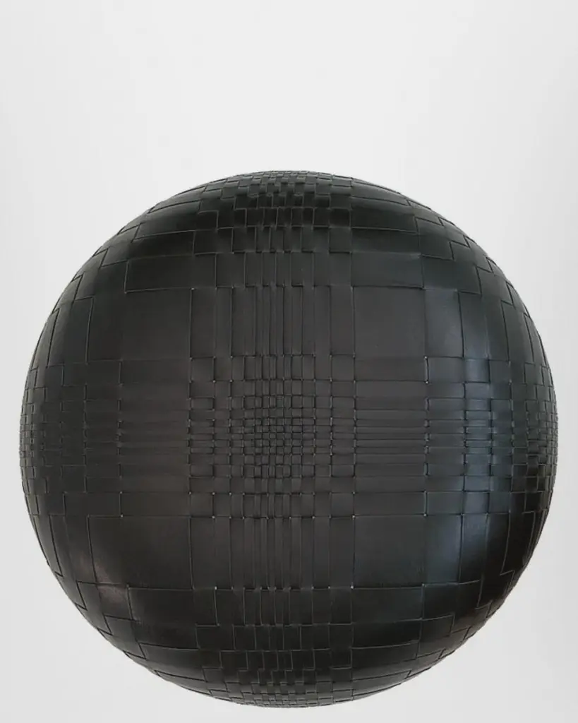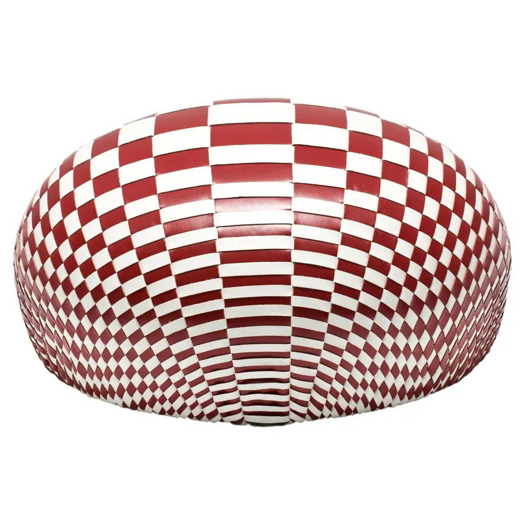 A round ottoman as a drop of water, where surface tension lines are transformed into a network of strips of leather. As for some optical works of the ’50s, Nendo studied perceptual processes underlying the movement, translating them into an arrangement of lines and geometric shapes arranged in a precise mathematical approach. The optical effect, emphasized by reports of extension and the use of black and white in its simplicity allows multiple reading of the object, at the same time structural and surface.Injected flame-retardant polyurethane foam. Base in heat-formed shock-absorbent white plastic. Woven Class leather only cat.Z, in either one or two colors.Small version available.DIMENSIONS:ø 100 x 35 cmVarious leather upholstery available, please inquire with us.