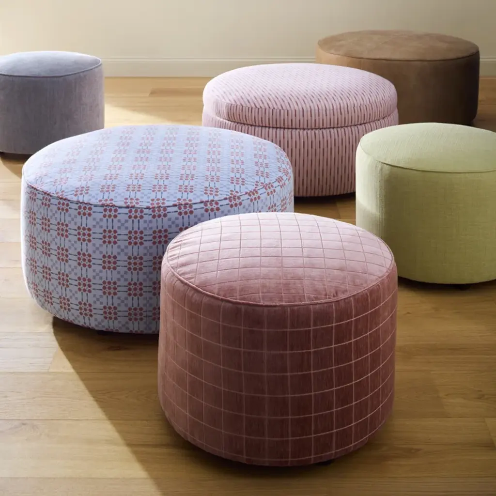 This cocktail ottoman completes your space and can be customized to match your color palette. The wooden frame is wrapped in stain-resistant upholstery, available in a variety of colors and textures. A foam-filled cushion and web suspension offer comfort and support, making it perfect for kicking back or providing extra seating. Its generous size also lets it double as a coffee table with a decorative tray. Love the look? Shop the collection.