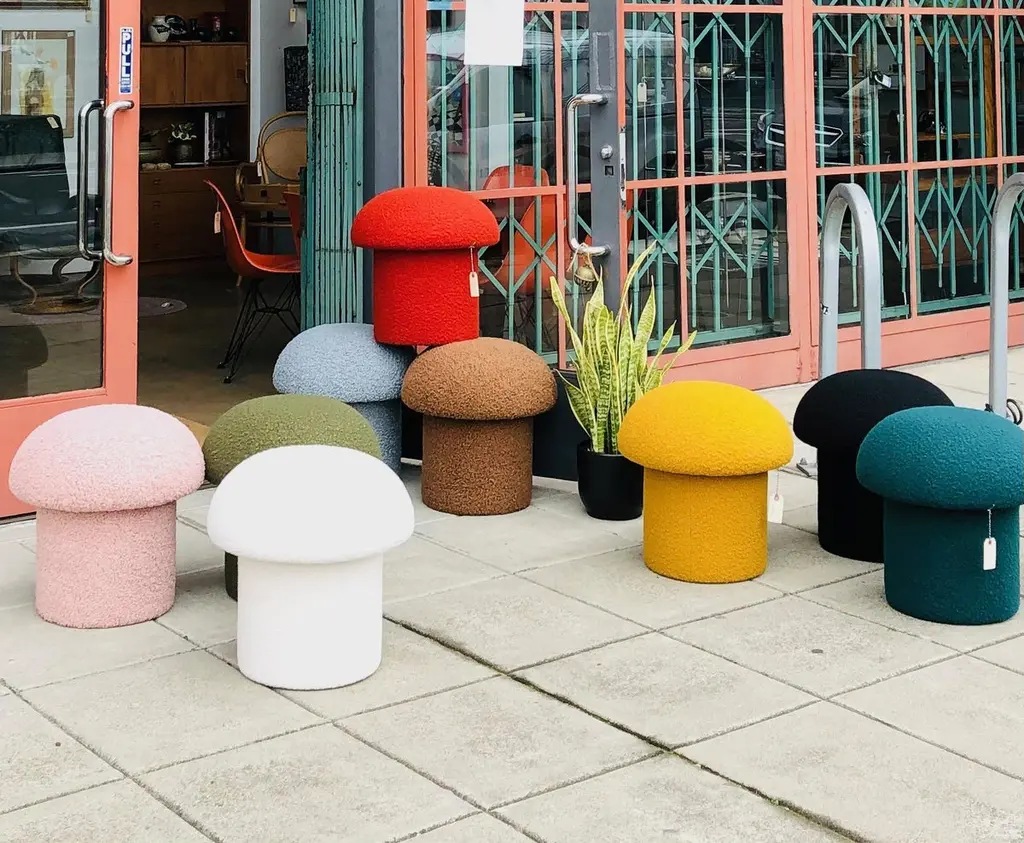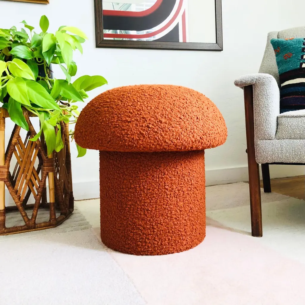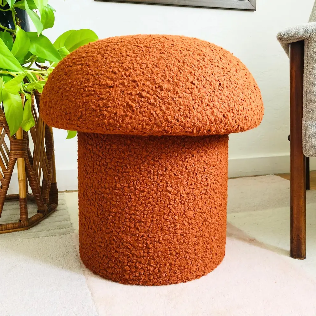 Mushroom Ottoman In Cinnamon Boucle