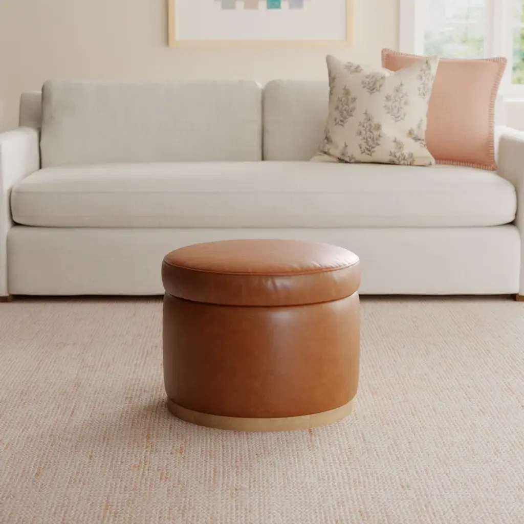 Kick up your heels and relax with the Naka Storage Ottoman. This stationary ottoman offers ample storage for all of your baby's extra sheets and blankets on a stylish, light wood base. Finely upholstered by hand in our 100% vegan leather, the ottoman can be mixed and matched with any seating to create a statement piece during your nursery years and beyond.