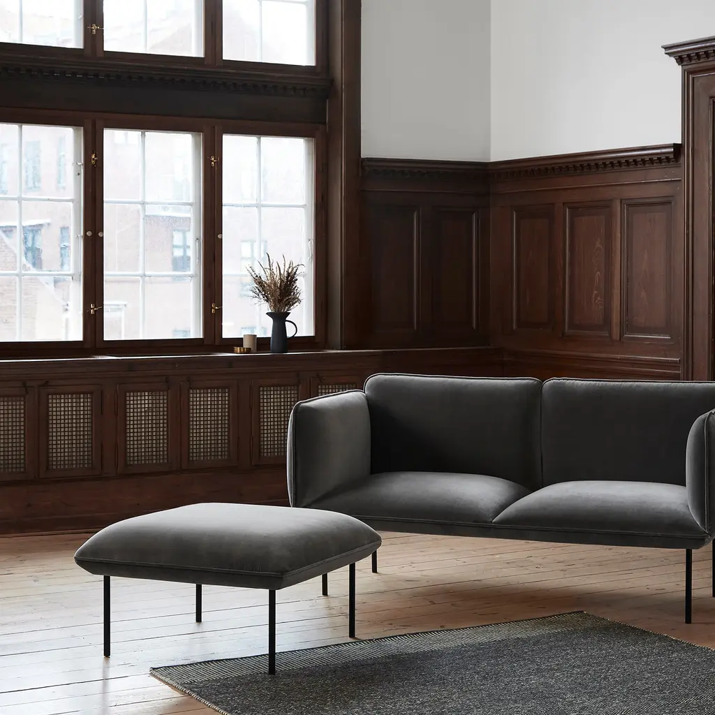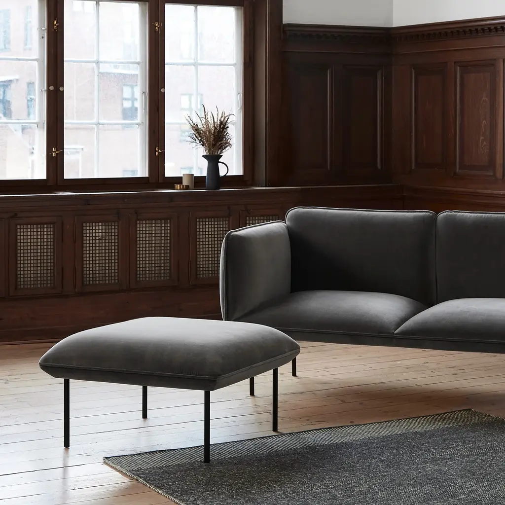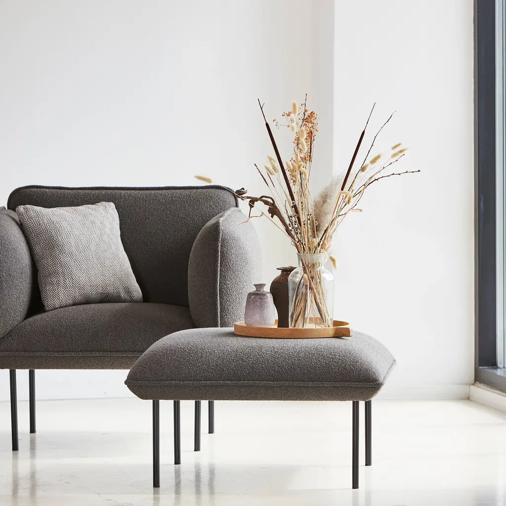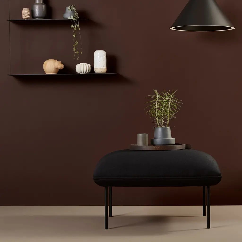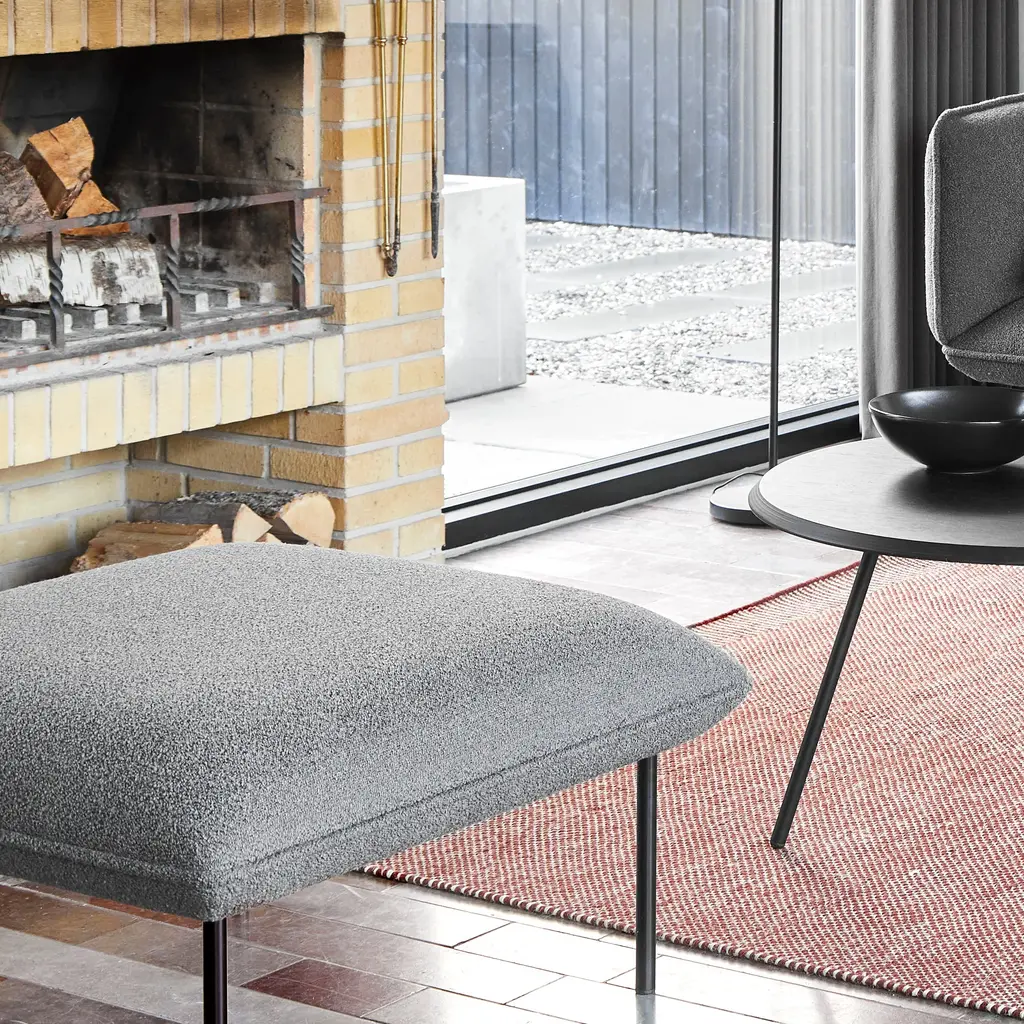 Extending the well-padded comfort, the Nakki Ottoman makes for a logical addition to the companion sofa and lounge chair from Danish design brand Woud. The voluminously rounded proportions are an open invitation to rest your feet in contented repose. Or pull up the ottoman for an easy extra seat. Finnish design star Mika Tolvanen provides a smart visual contrast with the rounded upholstery resting on slender metal legs.