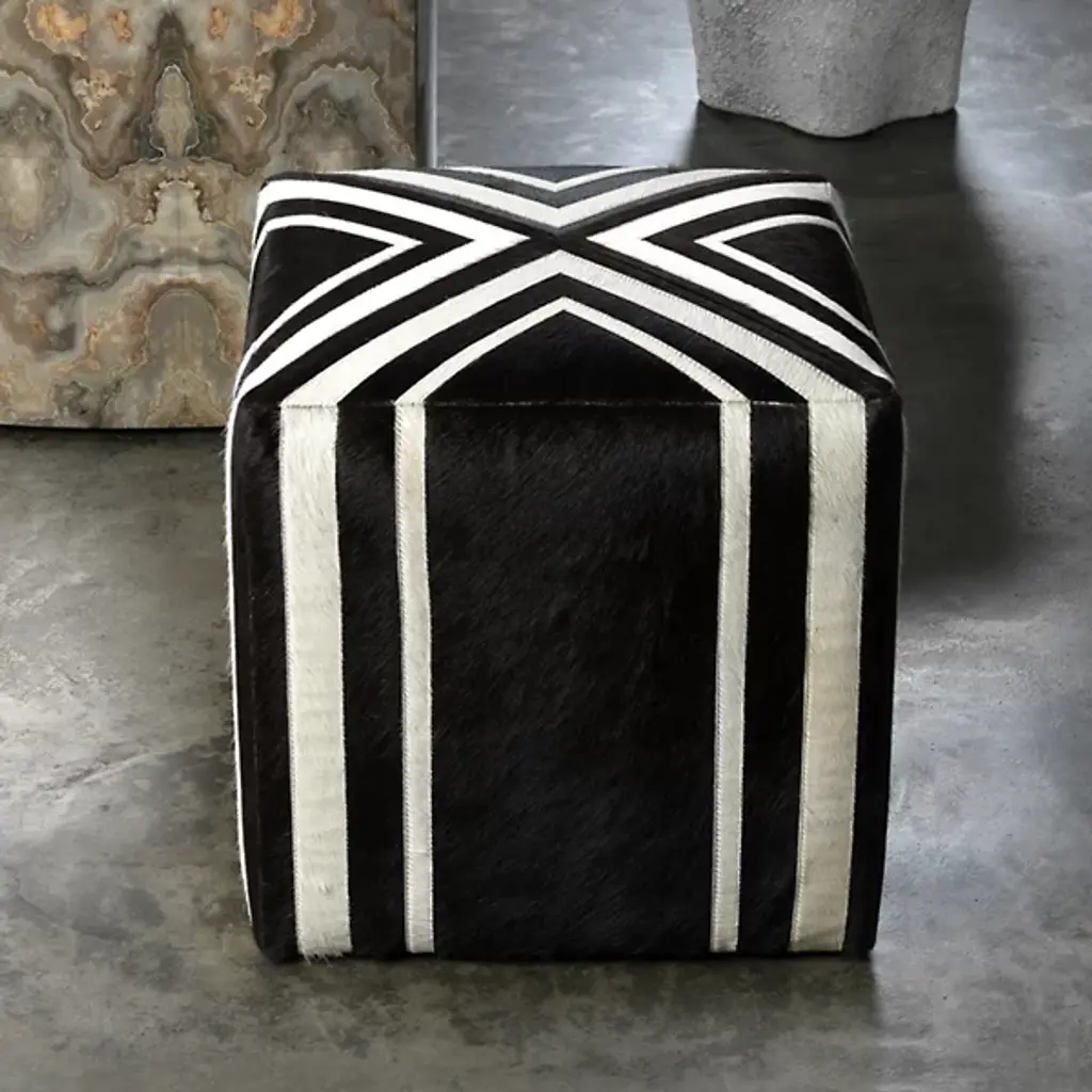 Make a bold design statement with the Nantucket Criss Cross Ottoman from Jamie Young Co. This lovely ottoman is upholstered with hair on hide. Composed of MDF, Nantucket features a criss cross pattern which draws the attention of your guests. This multi-functional accent piece is supplemented with comfortable foam. Nantucket’s shell material features inherent variations in tone and texture, giving you a furnishment which is distinctive and highly versatile