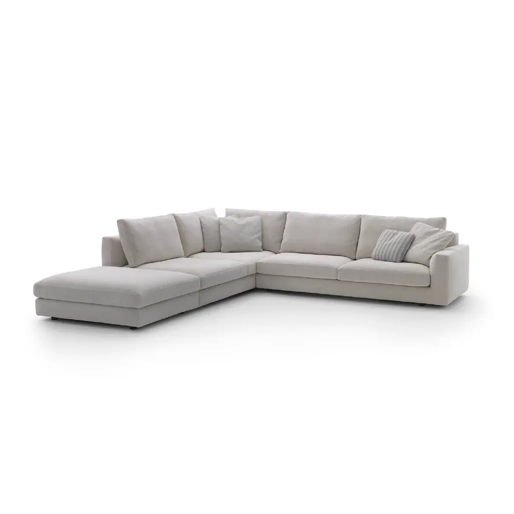 Neutral Toned Fabric Ottoman | Arflex Rendez-Vous