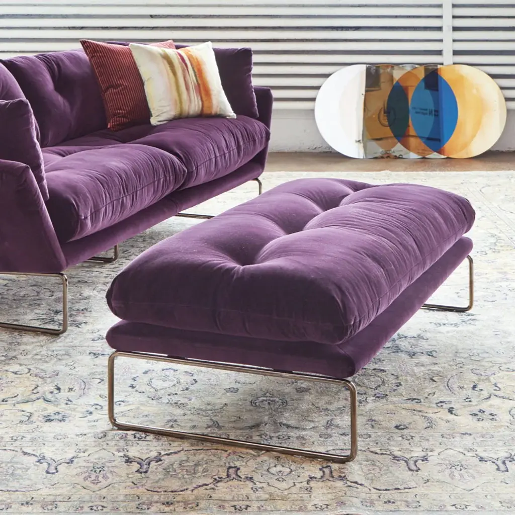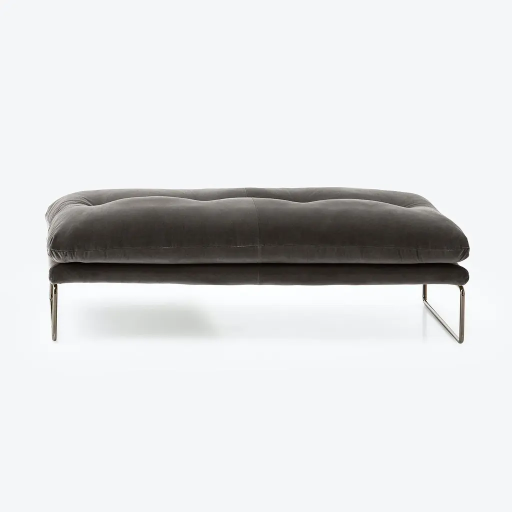 Introducing the New York Suite Long Ottoman, offered exclusively at abc carpet & home. This luxurious piece boasts a thick cushioned form upholstered in sumptuous cotton velvet, ensuring maximum comfort without compromising on style. Its sleek black nickel base elevates any interior with its modern allure. Measuring 55 inches in width, 16.5 inches in height, and 26 inches in depth, this ottoman offers ample space for lounging and relaxation, making it the perfect addition to your living room or cozy reading nook. Available in eight rich velvet colors that exude warmth and elegance, creating a welcoming atmosphere that beckons you to indulge in relaxation. Constructed from 100% velvet, this ottoman is not only luxurious to the touch but also durable and resilient, ensuring long-lasting comfort and enjoyment. Designed for convenience, it comes complete with a removable slipcover, allowing for easy cleaning and effortless customization of your decor. Whether you're hosting a gathering or simply enjoying a quiet evening at home, this versatile piece effortlessly adapts to your needs, making entertaining guests a breeze. For maintenance, simply opt for dry cleaning to preserve the ottoman's pristine appearance. Occasional vacuuming helps to keep the velvet looking fresh and new, maintaining its plush texture for years to come. To safeguard against fading and to uphold the upholstery's condition, it's advisable to shield it from direct sunlight. Please note that due to the nature of the dyeing process, color variations may occur between different batches. Pair this ottoman with the New York Suite Sofa to create a harmonious interplay of shapes and textures. Transform your living space into a sanctuary of relaxation and indulgence with the New York Suite Ottoman.