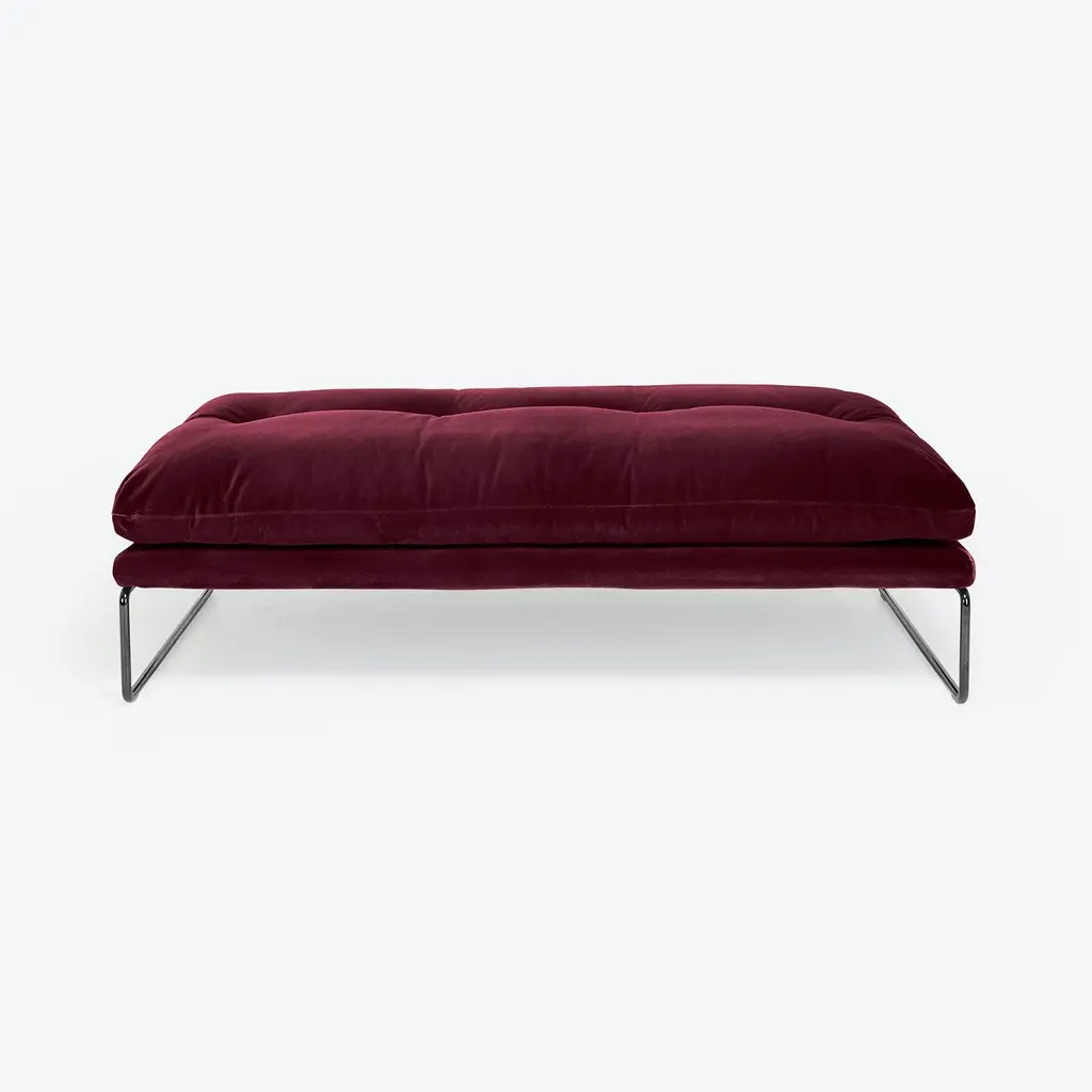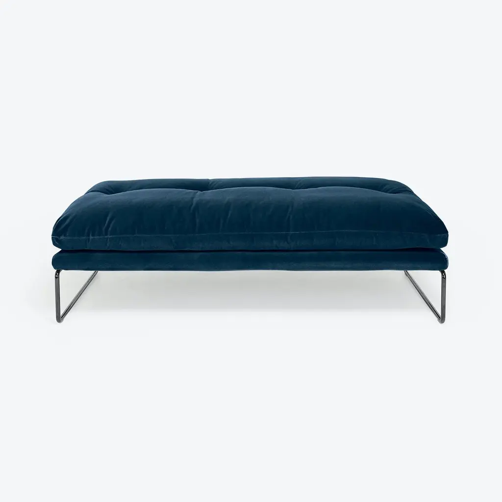 Introducing the New York Suite Long Ottoman, offered exclusively at abc carpet & home. This luxurious piece boasts a thick cushioned form upholstered in sumptuous cotton velvet, ensuring maximum comfort without compromising on style. Its sleek black nickel base elevates any interior with its modern allure. Measuring 55 inches in width, 16.5 inches in height, and 26 inches in depth, this ottoman offers ample space for lounging and relaxation, making it the perfect addition to your living room or cozy reading nook. Available in eight rich velvet colors that exude warmth and elegance, creating a welcoming atmosphere that beckons you to indulge in relaxation. Constructed from 100% velvet, this ottoman is not only luxurious to the touch but also durable and resilient, ensuring long-lasting comfort and enjoyment. Designed for convenience, it comes complete with a removable slipcover, allowing for easy cleaning and effortless customization of your decor. Whether you're hosting a gathering or simply enjoying a quiet evening at home, this versatile piece effortlessly adapts to your needs, making entertaining guests a breeze. For maintenance, simply opt for dry cleaning to preserve the ottoman's pristine appearance. Occasional vacuuming helps to keep the velvet looking fresh and new, maintaining its plush texture for years to come. To safeguard against fading and to uphold the upholstery's condition, it's advisable to shield it from direct sunlight. Please note that due to the nature of the dyeing process, color variations may occur between different batches. Pair this ottoman with the New York Suite Sofa to create a harmonious interplay of shapes and textures. Transform your living space into a sanctuary of relaxation and indulgence with the New York Suite Ottoman.
