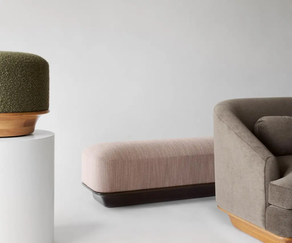 The Nico Ottoman combines handsome proportions with timeless materials and an emphasis on comfort. The rounded form and shapely solid wood base of the ottoman creates a harmonious whole from component parts.Pricing is quoted COM - does not include fabric costs.