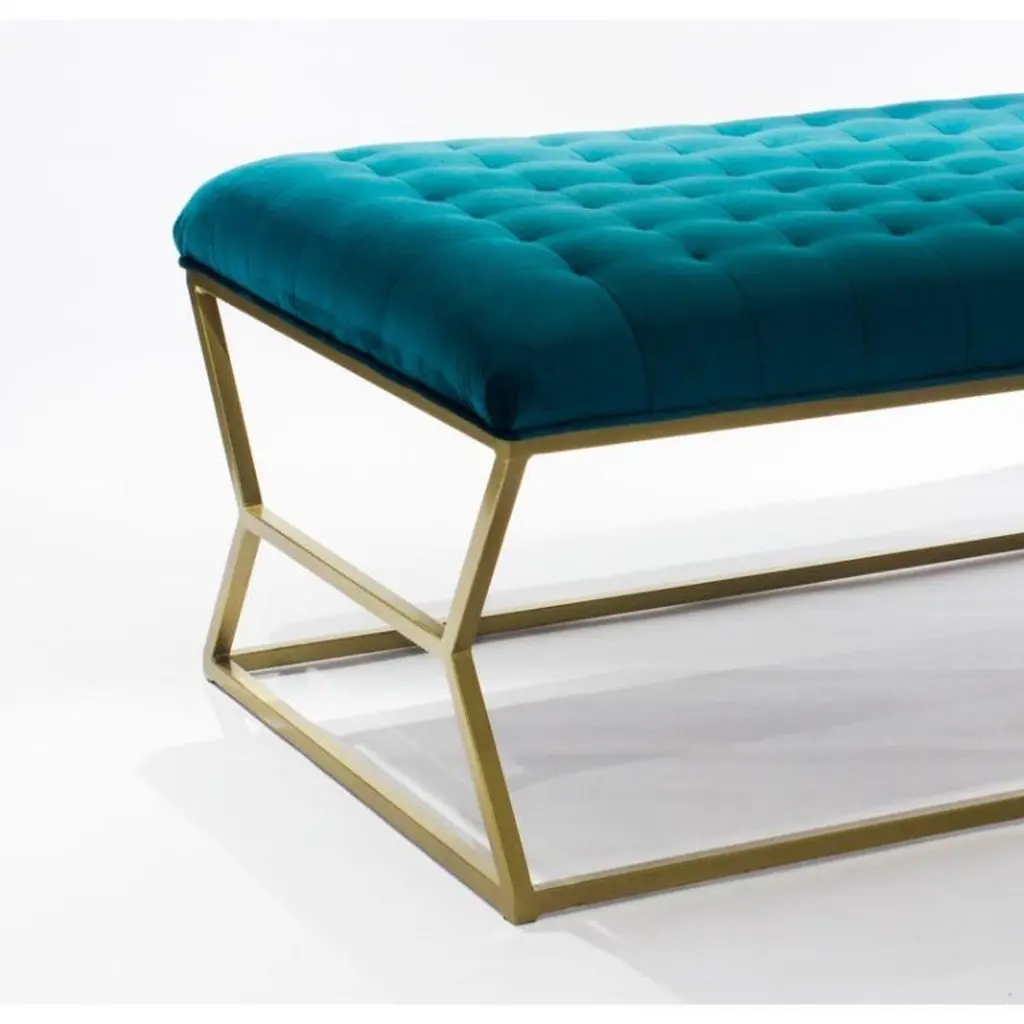 Nontando ottoman by TheUrbanativeDimensions: W70 x L120 x H53 cmMaterial: Powder-coated steel frame. Velvet upholstered seat with Quilted fabric.TheUrbanative is a contemporary South African furniture and product design company based in Johannesburg.The furniture and products are differentiated by the juxtaposition of abstracted African heritage inspirations with the functionality & aesthetic qualities of modern furniture silhouettes, materials & technologies; whilst guided by the philosophies of storytelling, craft, collaboration and design evolution.All of the products are designed and manufactured in South Africa. Started in 2017 by Mpho Vackier (a process engineer turned interior &furniture designer), TheUrbanative's work is a constant exploration of the role of culture and heritage representations. Along with that concepts of visibility & representation of African cultures in modern societies with the ultimate intention of telling African stories through modern furniture and product design.