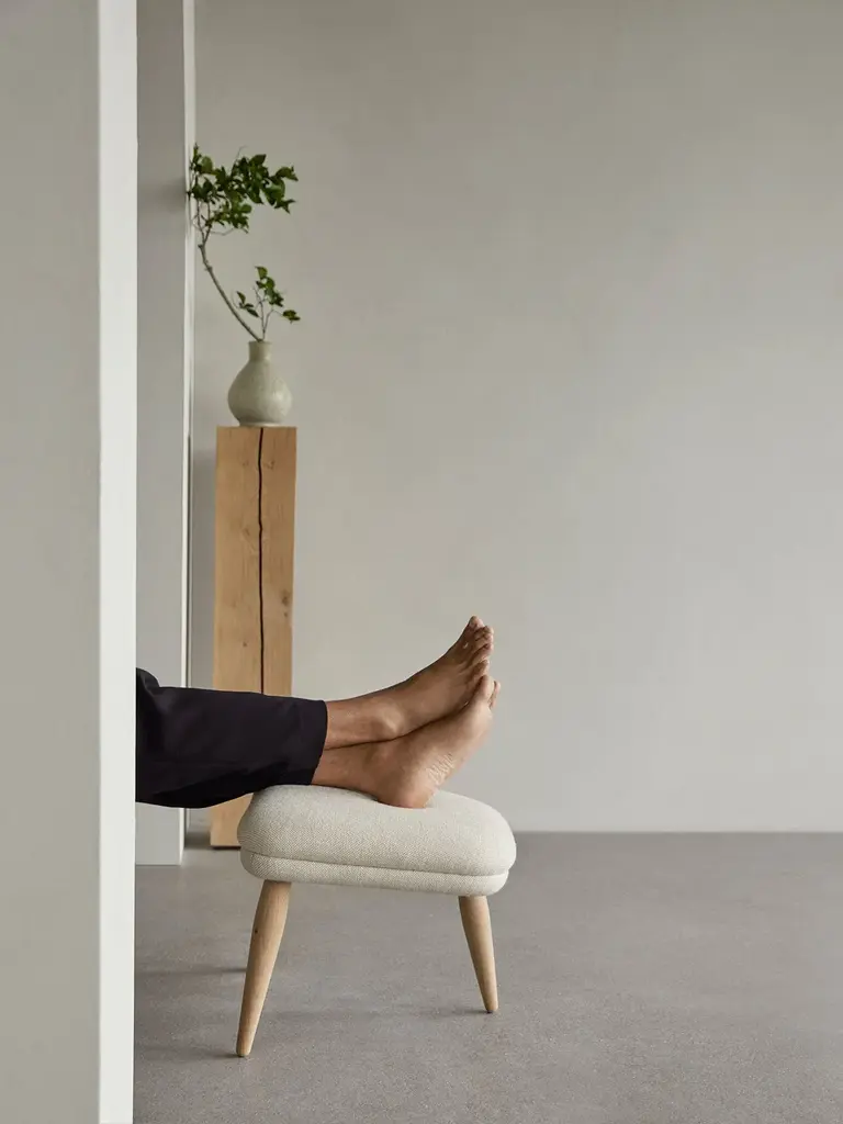 Designed for use with Arnold Madsen’s Oda Chair but equally purposeful alone, the Oda Ottoman profiles the same careful craft and embracing form, shaped to offer comfortable support when seated. Constructed according to a vintage version as there are no drawings of the original design, the Oda Ottoman profiles a sublime level of craftsmanship, evident in the intricacy of its upholstery. Available with legs in natural oak or walnut.