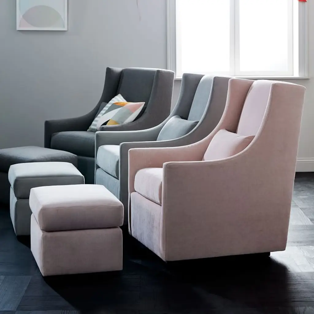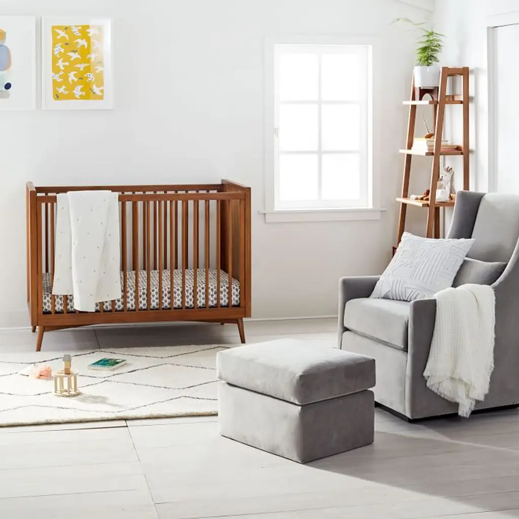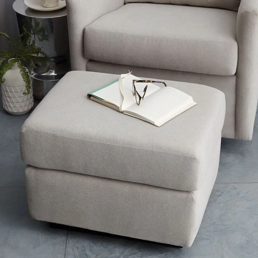 Made to match the Graham Glider, this stationary ottoman is also GREENGUARD certified and assembled in the USA. Choose from a wide range of fabrics and colors. Open Box items may show light scratches on legs, fabric pulls and slight fabric wear, and furniture pieces may require tightening or leveling. Items do not come in their original packaging. Sold at a deep discount. All sales are final. Brought to you in collaboration with Pottery Barn Kids. Hand-built frames with hand-finished upholstery. Kiln-dried engineered hardwood frame. Foam cushioning and polyester padding. Metal base is stationary. Pairs with Graham Glider (sold separately). GREENGUARD Gold Certified. This low-emitting product has been screened for over 10,000 chemicals and VOCs. Rigorously tested to meet or exceed all required and voluntary safety standards. Assembled in the USA.