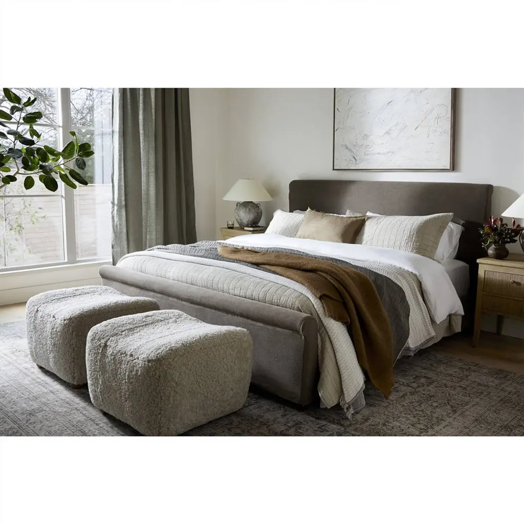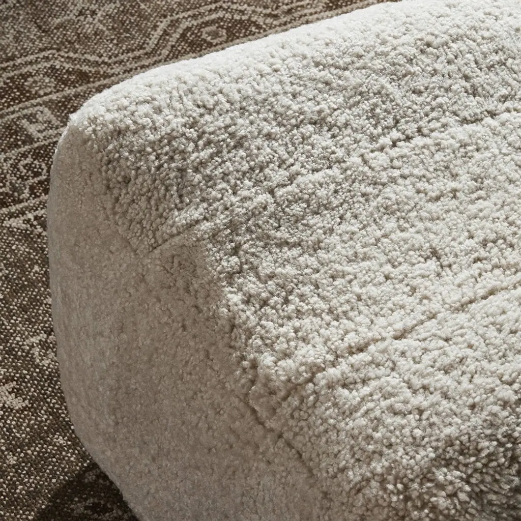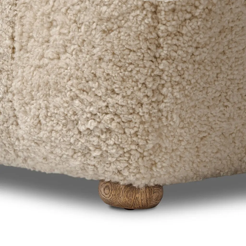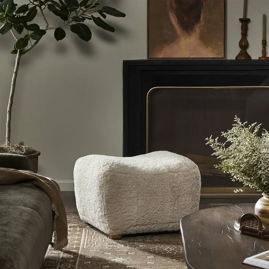 A design collaboration by Amber Lewis and Four Hands.A subtle sweetheart shape paired with beige shearling plays into our Oslo Beige Shearling Ottoman's found object appeal. S-spring suspension offers a comfy place to sit and the shearling upholstery brings depth and vintage vibes throughout. Perfect styled alone or as part of a set for added drama.