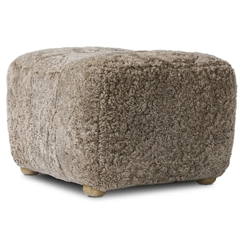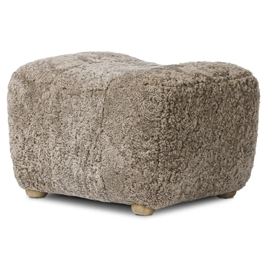 A design collaboration by Amber Lewis and Four Hands.A subtle sweetheart shape paired with beige shearling plays into this ottoman's found object appeal. S-spring suspension offers a comfy place to sit and the shearling upholstery brings depth and vintage vibes throughout. Perfect styled alone or as part of a set for added drama.