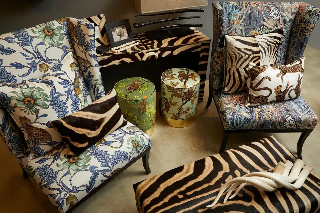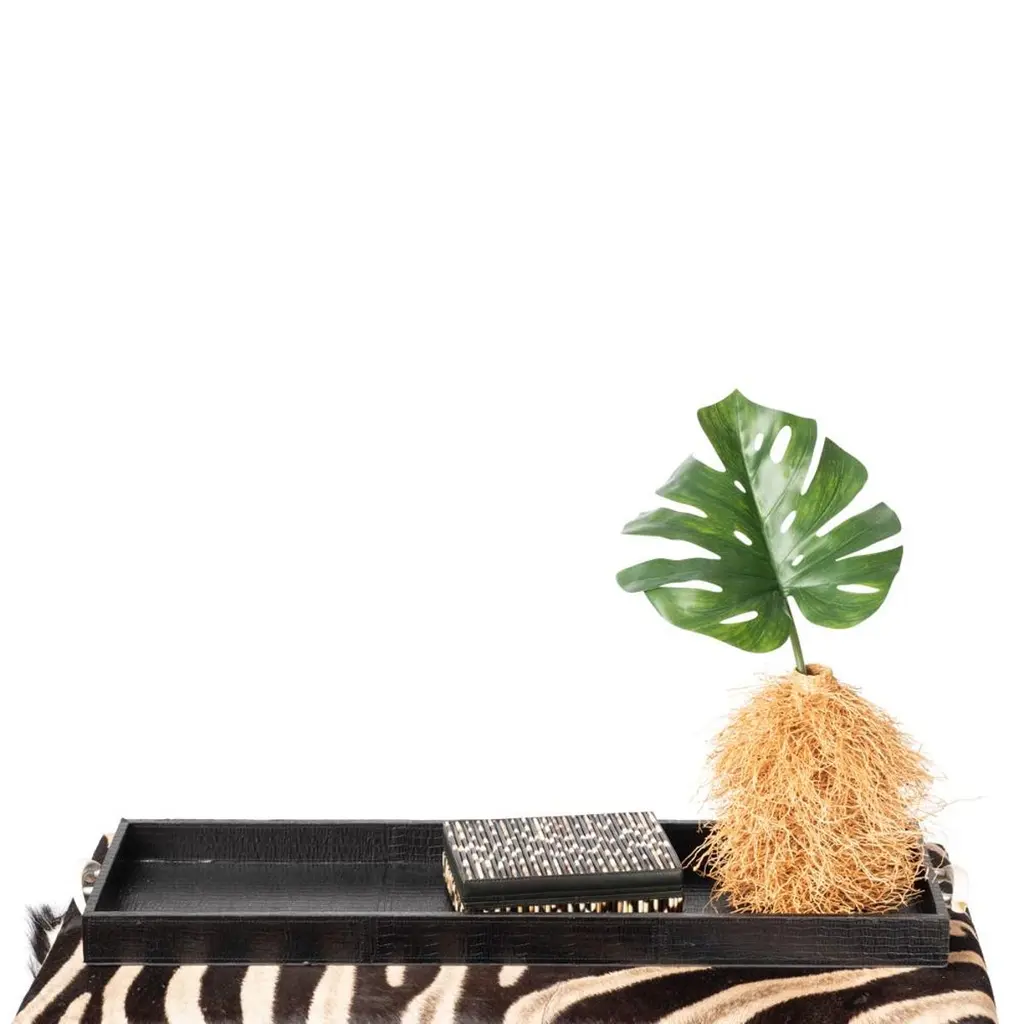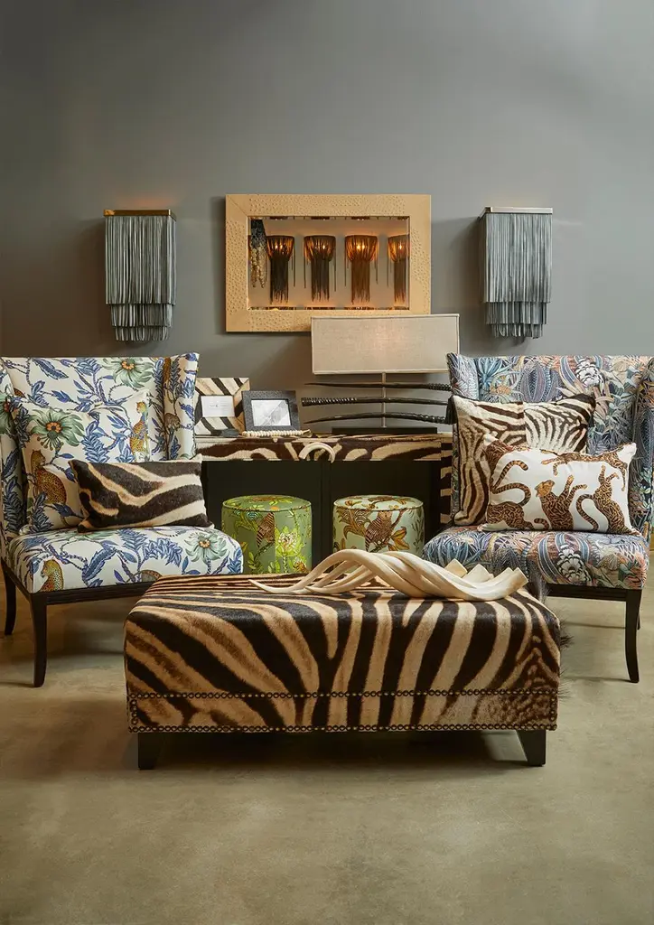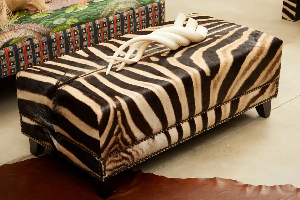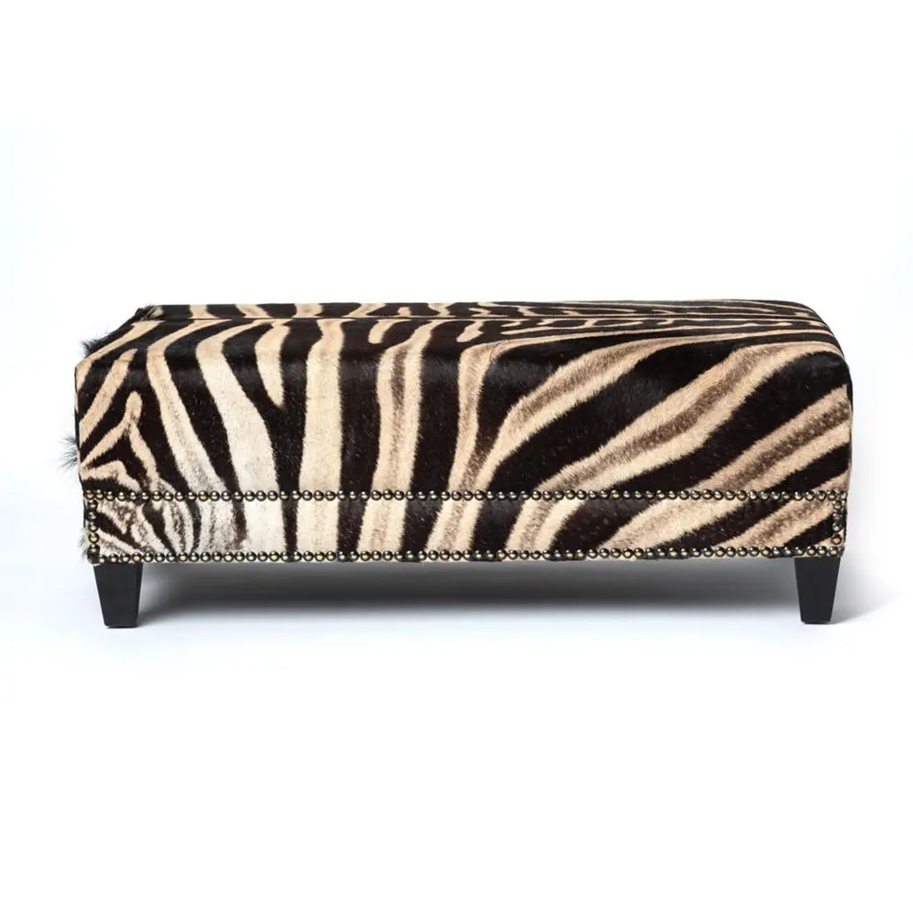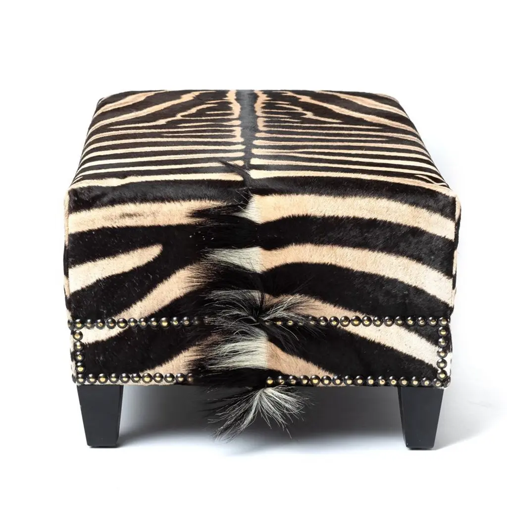 Decorative and functional, our ottoman is constructed with sustainabily sourced Burchell's Zebra hide. Complemented with a double border of nailheads. Due to the use of natural materials, each piece is unique and may vary slightly from image shown.Product informationDimensions: 44"W x 21.5"D x 16"HColor: NaturalMade of: Genuine Zebra HideMade in: Cape Town, South AfricaNatural variation to be expected – particularly the amount of mane featured and coloration of the hide.