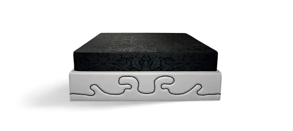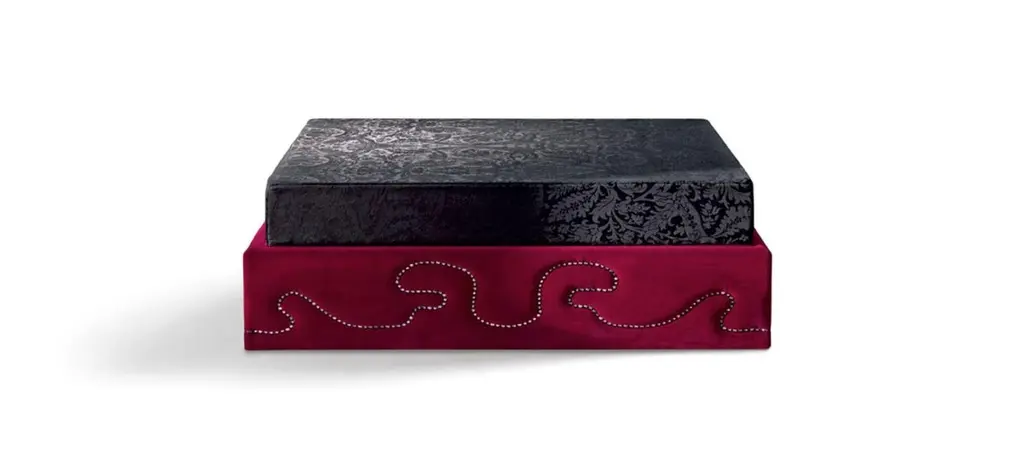Ottoman Wood Fabric Or Leather Upholstery Decoartive Bronze Nails On Side