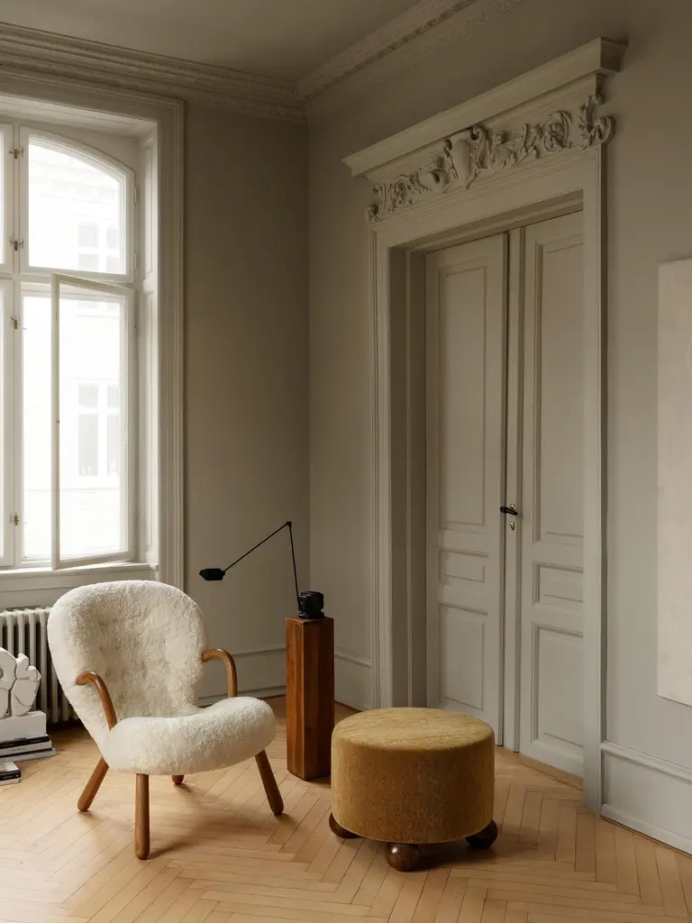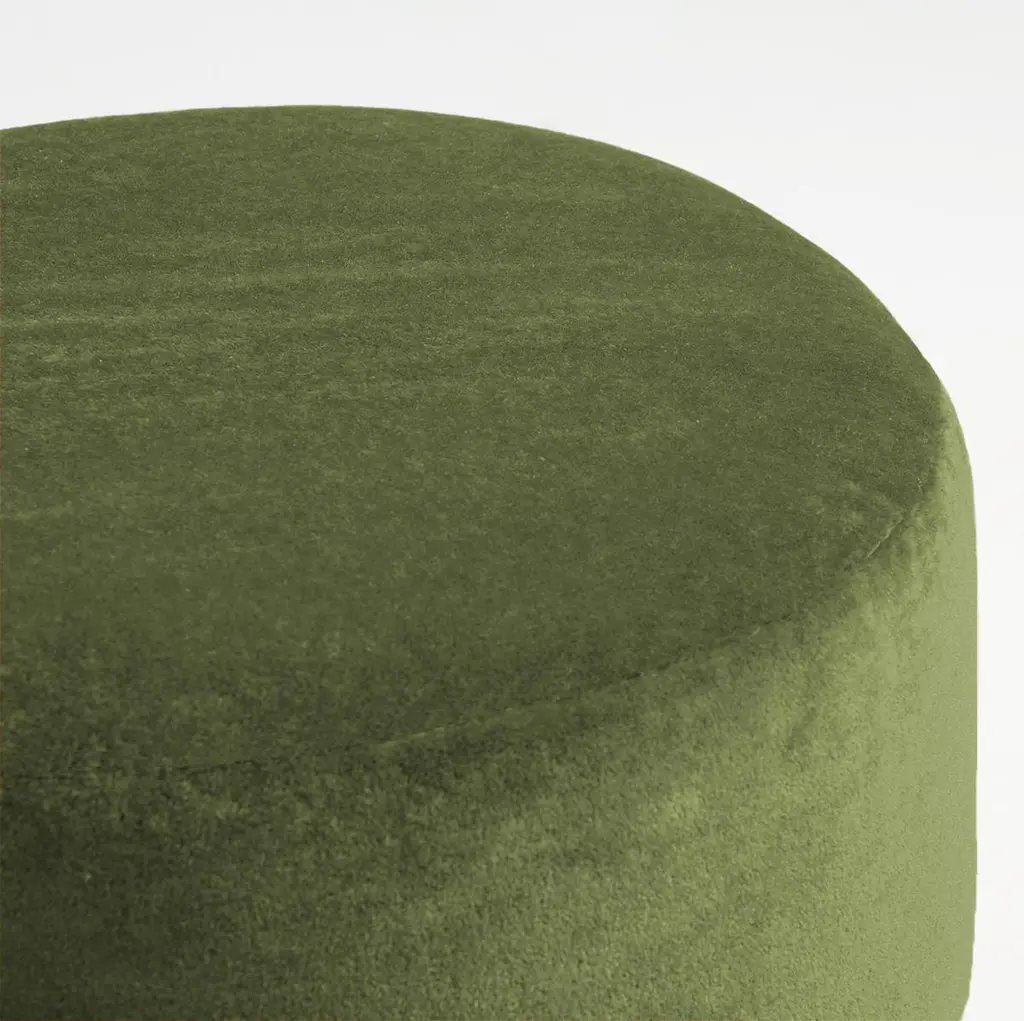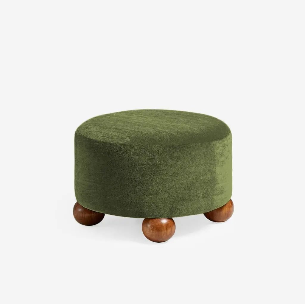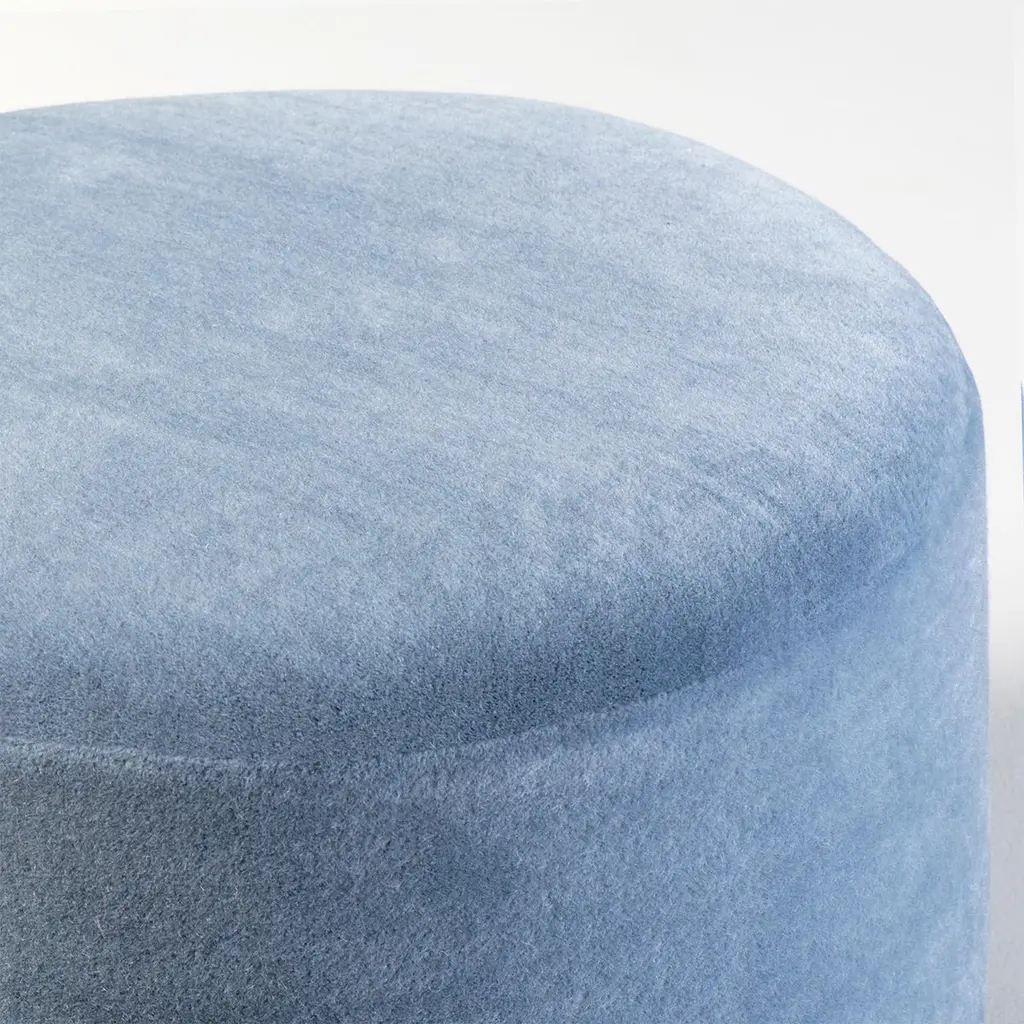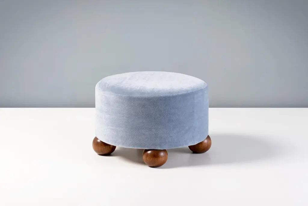 Dagmar - Luupo Round OttomanThe Luupo Ottoman offers a versatile and sophisticated seating option for any modern interior. The round, inviting form sits on top of solid oak or walnut ball feet in a range of rich finishes. These examples are upholstered in a sky blue mohair velvet by Pierre Frey with fumed oak ball feet. This ottoman is available to order in a range of different materials and with a choice of 3 leg finishes, it is also available in a 45cm tall version.Dimensions: D 55 cm / H 40 cm.