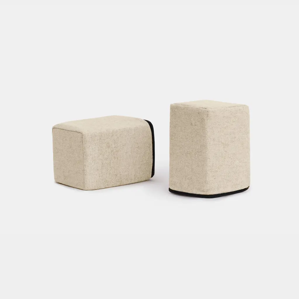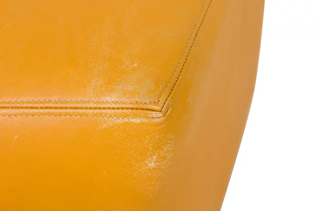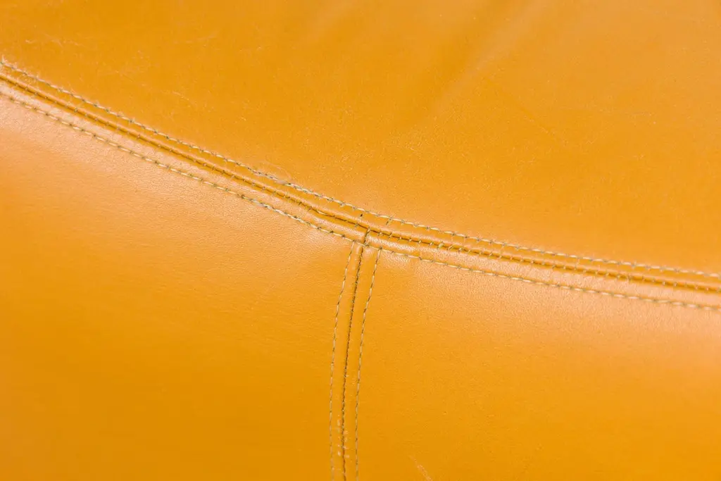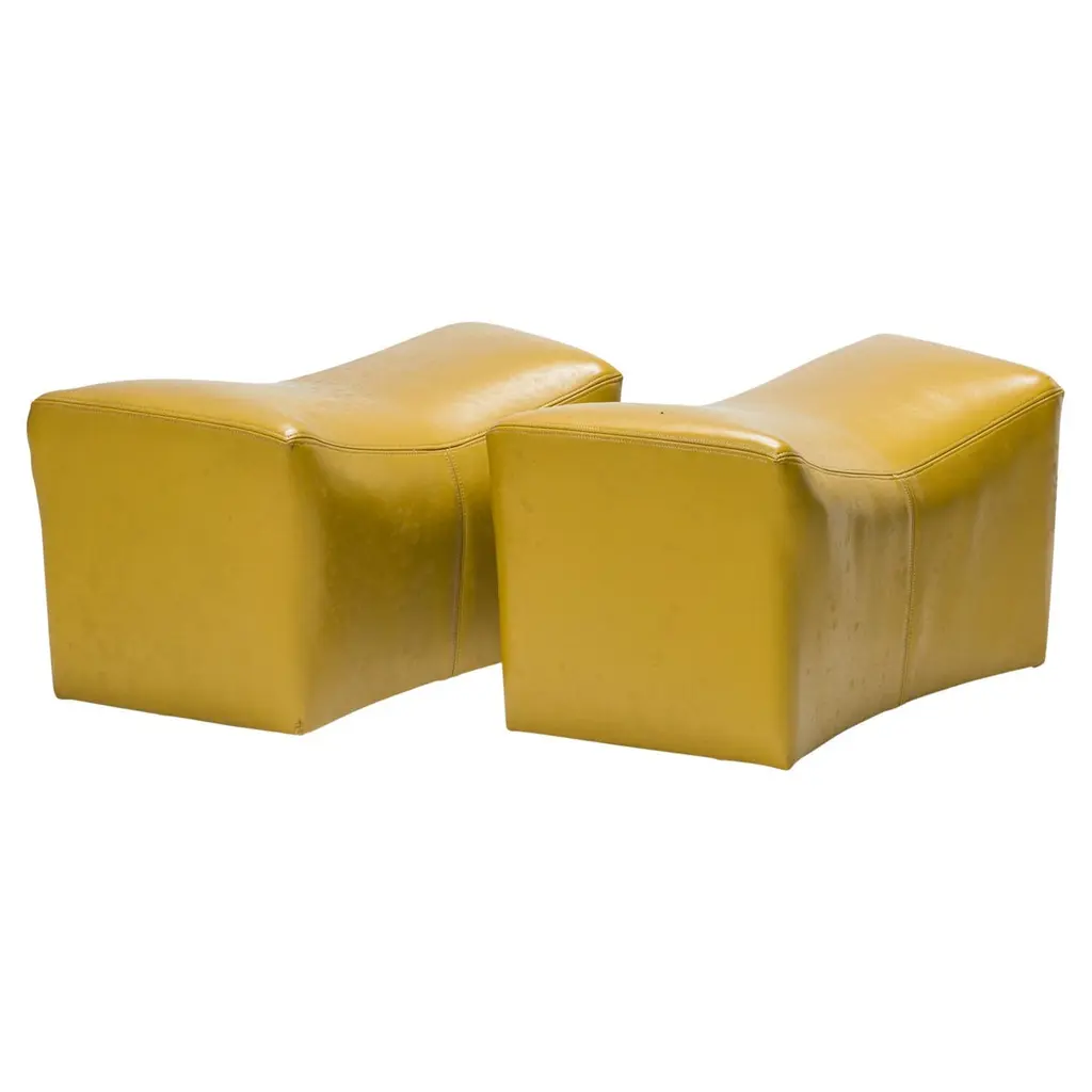 Pair Of Milo Baughman Mustard Yellow Leather Rolling Saddle Ottomans
