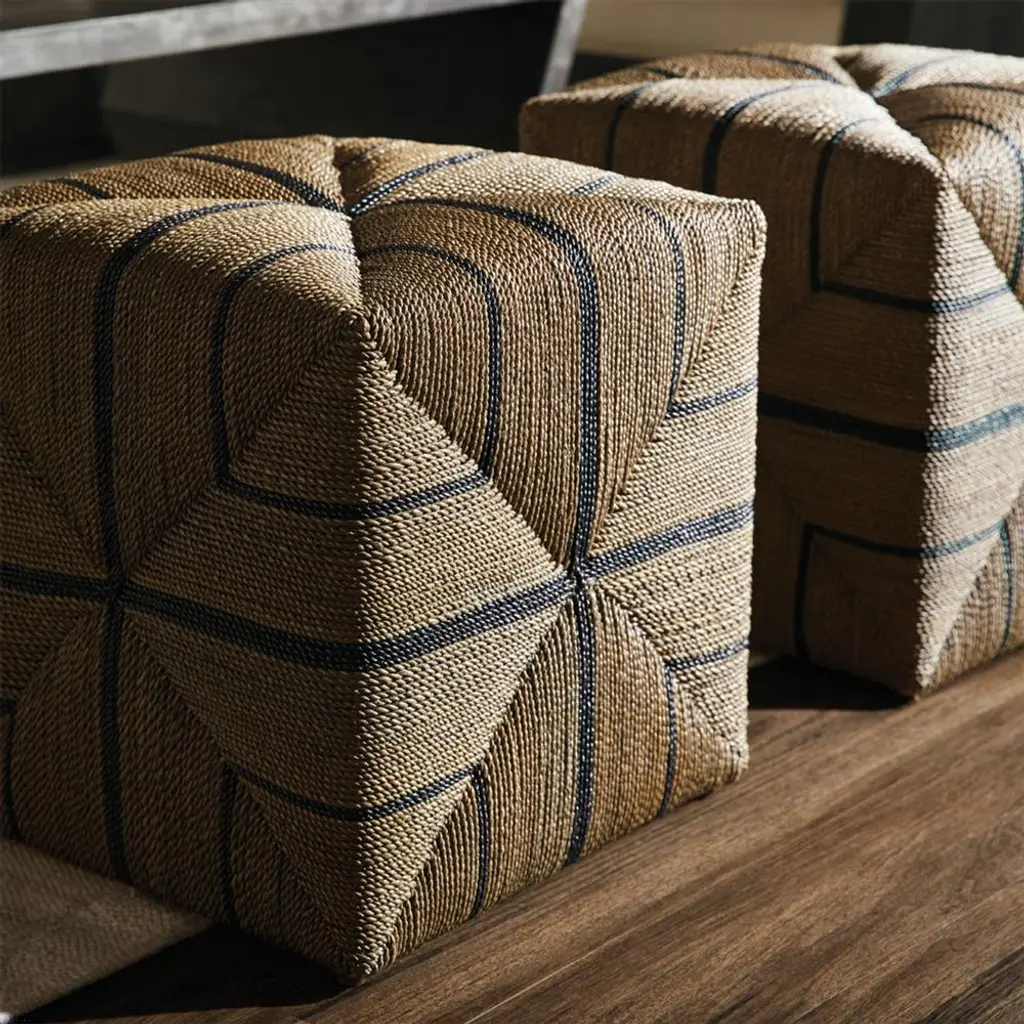 Palecek Fritz Coastal Beach Hand Twisted Lampakanai Rope Square Ottoman