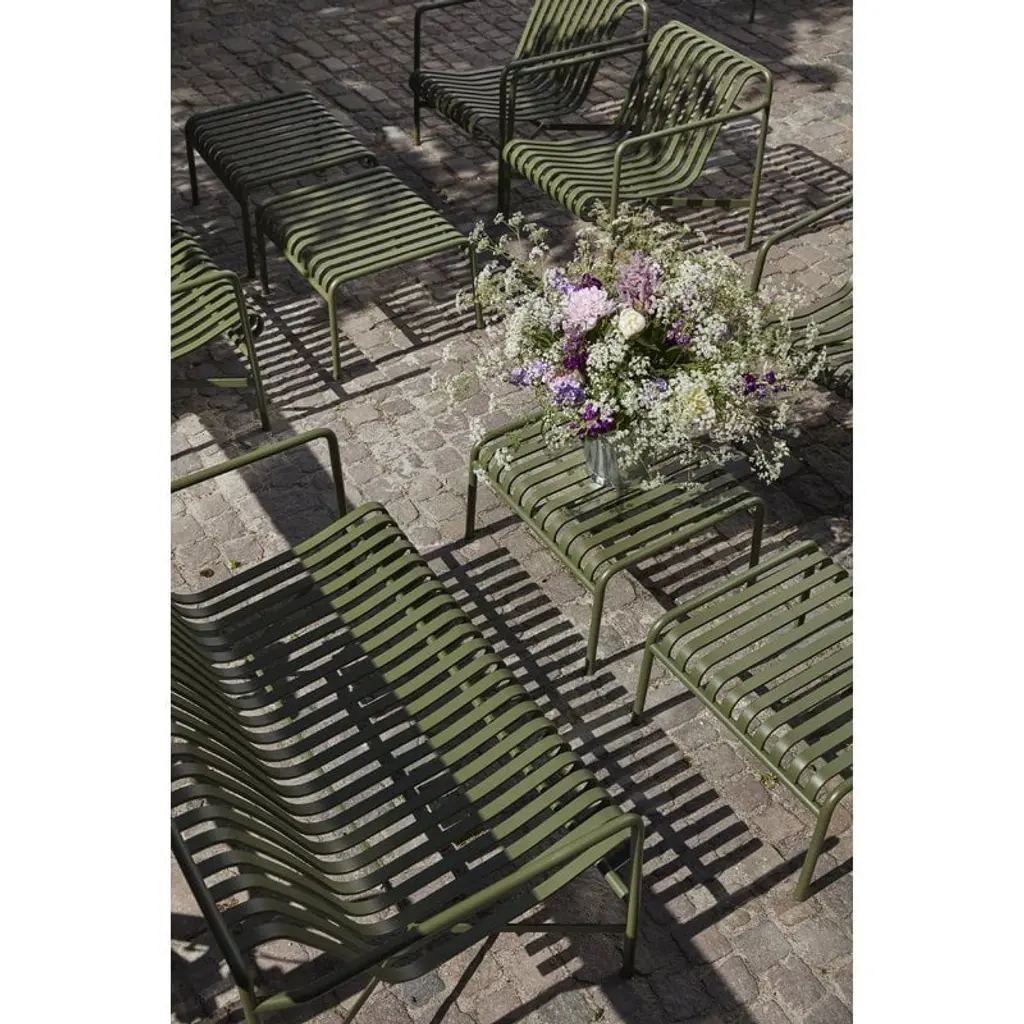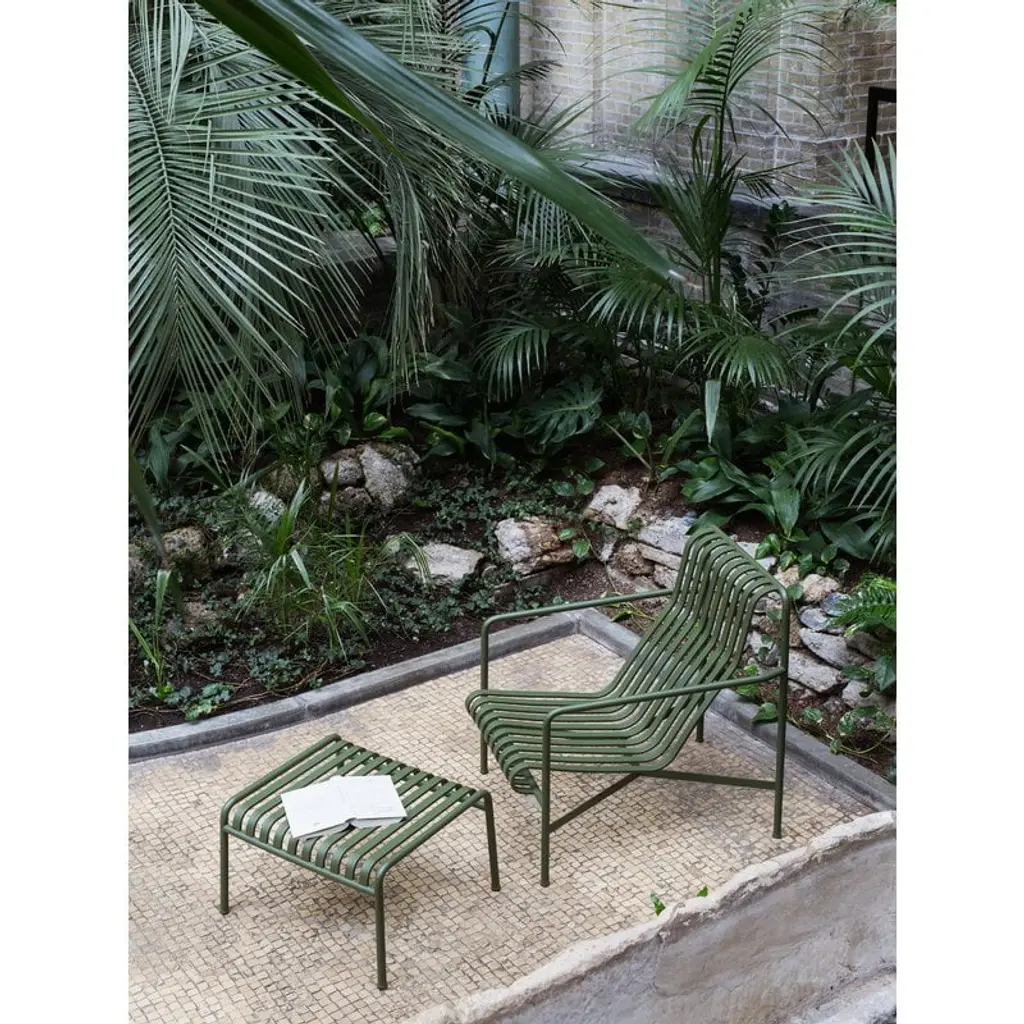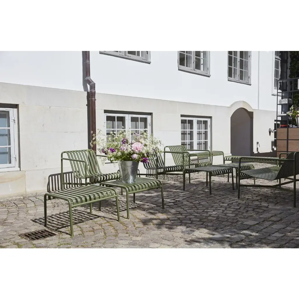 The sleek yet robust Palissade ottoman is a member of HAY’s versatile outdoor furniture collection. Palissade outdoor furniture features a strong, graphic design that consists of simple steel tubes and slats. Ronan and Erwan Bouroullec worked with the collection for two years and created a range of simple, balanced pieces that are well suited for terraces, balconies, gardens, cafés and public spaces. The Palissade chairs, tables and benches are sturdy but elegant, and perfect for outdoor use, since wind and water will pass through the galvanized steel frame. The Palissade furniture was designed to age well and its muted color palette adds to the timeless and versatile appearance.