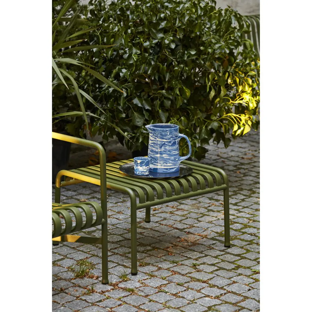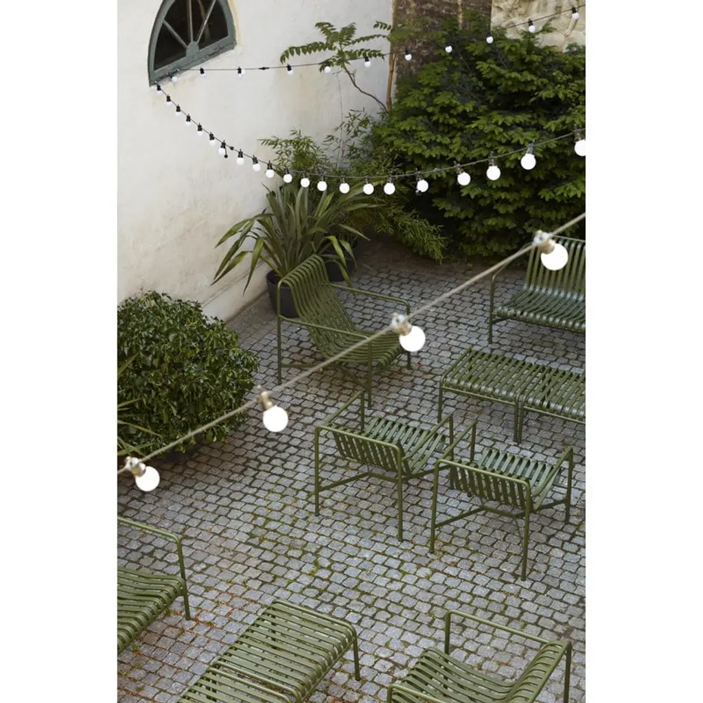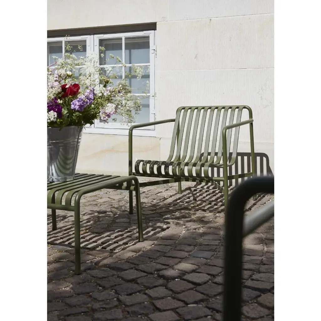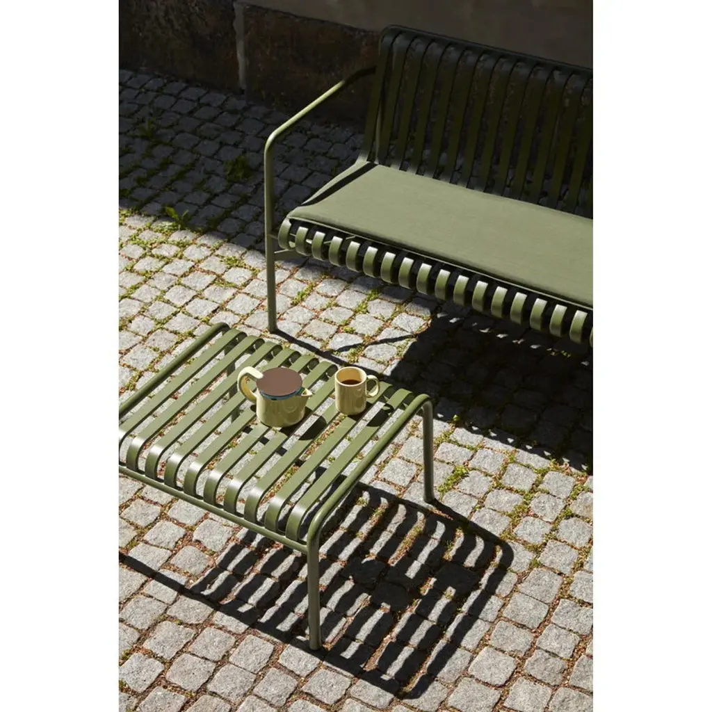 The sleek yet robust Palissade ottoman is a member of HAY’s versatile outdoor furniture collection. Palissade outdoor furniture features a strong, graphic design that consists of simple steel tubes and slats. Ronan and Erwan Bouroullec worked with the collection for two years and created a range of simple, balanced pieces that are well suited for terraces, balconies, gardens, cafés and public spaces. The Palissade chairs, tables and benches are sturdy but elegant, and perfect for outdoor use, since wind and water will pass through the galvanized steel frame. The Palissade furniture was designed to age well and its muted color palette adds to the timeless and versatile appearance.