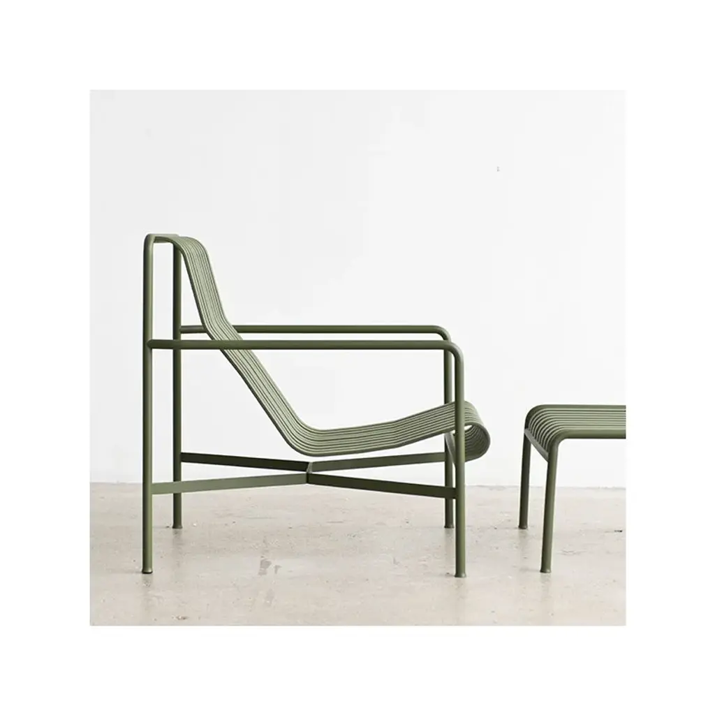 The sleek yet robust Palissade ottoman is a member of HAY’s versatile outdoor furniture collection. Palissade outdoor furniture features a strong, graphic design that consists of simple steel tubes and slats. Ronan and Erwan Bouroullec worked with the collection for two years and created a range of simple, balanced pieces that are well suited for terraces, balconies, gardens, cafés and public spaces. The Palissade chairs, tables and benches are sturdy but elegant, and perfect for outdoor use, since wind and water will pass through the galvanized steel frame. The Palissade furniture was designed to age well and its muted color palette adds to the timeless and versatile appearance.