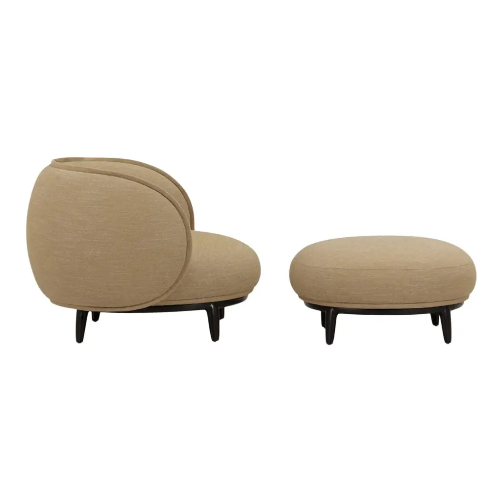 The Parlour Ottoman distills contemporary luxury into its most essential formcreating the perfect companion piece for moments of elevated relaxation. Designed by Swedish architect Jonas Wagell as part of his distinguished Parlour collection, this refined footrest completes the thoughtful vision of modern repose inspired by traditional parlour settings. With its perfectly proportioned circular silhouette, the ottoman features the same meticulous attention to detail that defines the collection. Pronounced piping outlines its generous cushioning, creating visual continuity while highlighting Wendelbo's commitment to exceptional upholstery craftsmanship. The ottoman's sophisticated presence is enhanced by its elegantly tapered legs in powder-coated cast aluminum, which create a subtle floating effect while ensuring stability. This thoughtful foundation echoes the design language of the companion lounge chair while allowing the ottoman to stand confidently as an individual design element within contemporary interiors. More than merely functional, the Parlour Ottoman embodies Wagell's philosophy of creating "simplistic and graphic objects that capture a room." Whether paired with its companion lounge chair to create a complete relaxation zone or used as a versatile standalone piece, the ottoman adds a refined touch to living spaces through its perfectly balanced proportions and thoughtful materiality.
