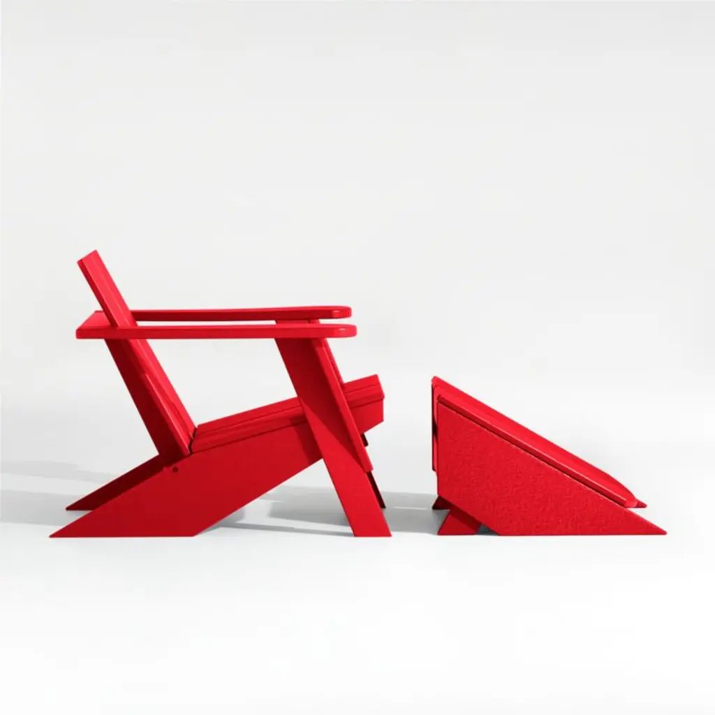 Kick back all summer (and beyond) with Paso. Our modern Adirondack chair ottoman is crafted of super-durable POLYWOOD®a proprietary blend of plastics that's weather- and UV-resistant. Slatted and sloped, the bright red ottoman teams up with the coordinating chair for the ultimate in outdoor lounging.