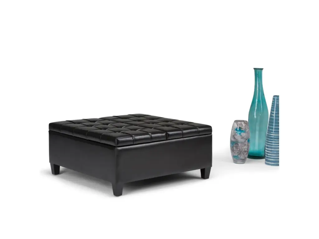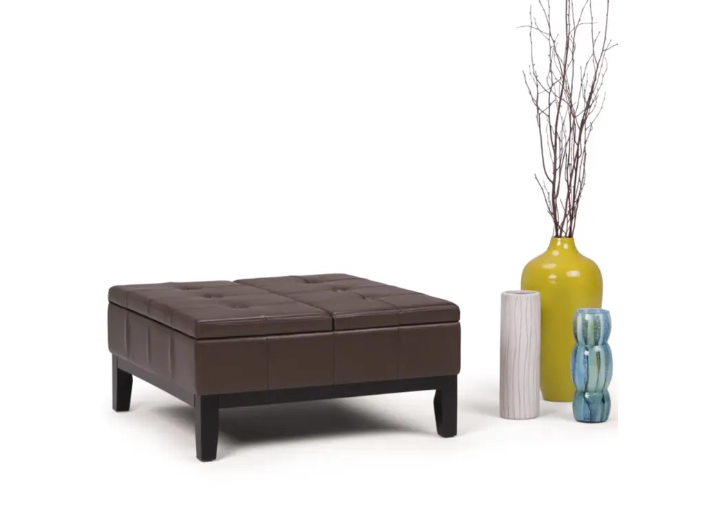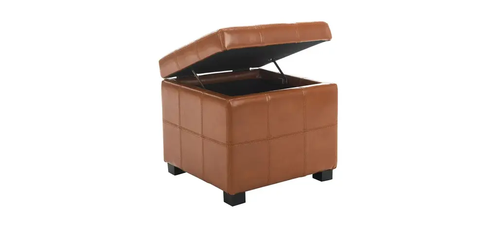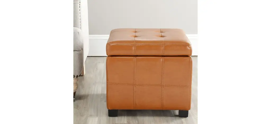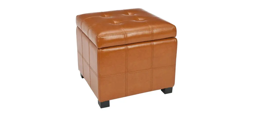 The Patrice Tufted Ottoman is an indulgence in luxe, functional contemporary style. Crafted with black birch wood and saddle brown bicast leather, its posh tufts conceal ample storage space below. Ideal for any room in need of a chic, functional update.