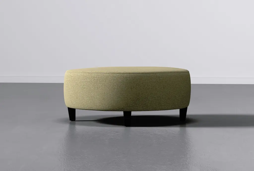 Bring versatility and personality to your space with our Perch large round ottoman. The perfect footrest, you can also use this design as a landing spot for trays of snacks and accents. Through our Special Order program, you are even able to customize the fabric at no extra charge.
