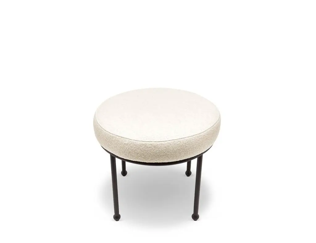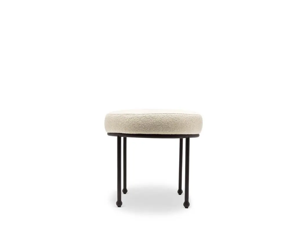 The Petite Orsini Ottoman features a minimal metal base with decorative ball feet and an upholstered seat. The Lawson-Fenning Collection is designed and handmade in Los Angeles, California. Reach out to discover what options are currently in stock.
