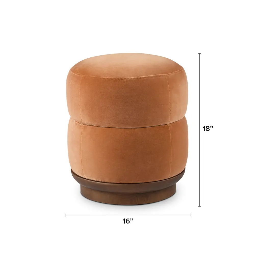Pica 16" Velvet Ottoman - Plush Pacific Rust