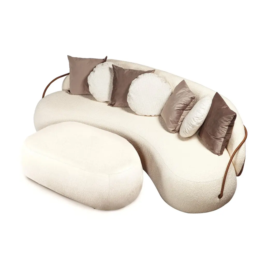 "Pietra" Curved Ottoman Upholsterd In Bouclé Fabric