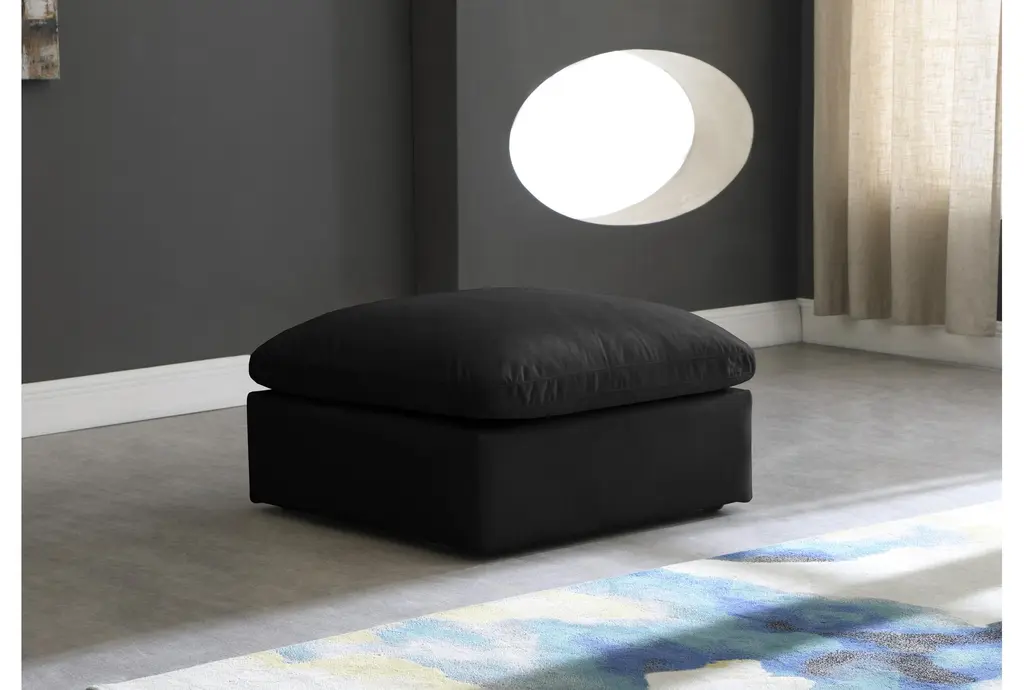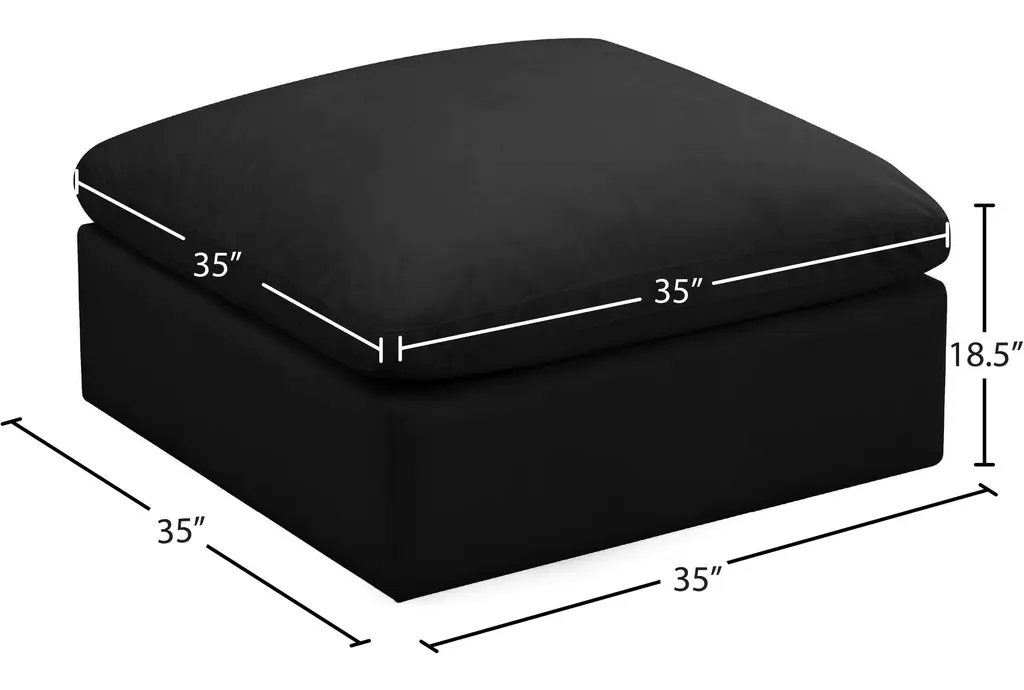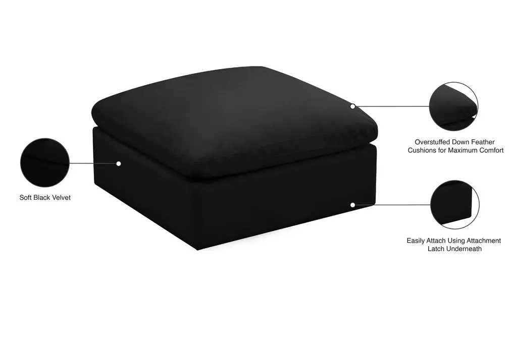 Plush Black Velvet Upholstered Standard Comfort Modular Ottoman | Square