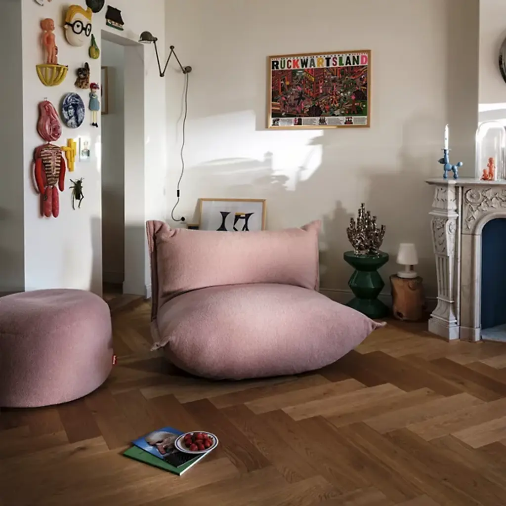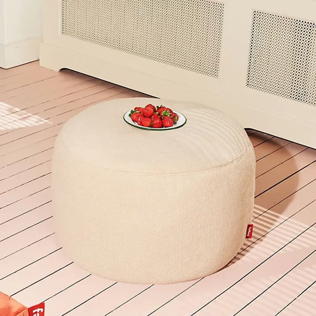 Presented by Fatboy, the Point Ottoman is a charming piece for entertaining or enjoying an afternoon with your feet kicked up. The ottoman is a luxe addition to the contemporary setting. It's made with FibreGuard-coated fabric that's lush and cleans up easily when spills occur. This fabric surrounds an interior filled with polystyrene that feels pillowy soft. One may use it traditionally for the elevation of the feet or as impromptu seating. Furthermore, a tray added to the smooth top can be used as an elegant table. The piece plants to the floor with an anti-slip bottom.