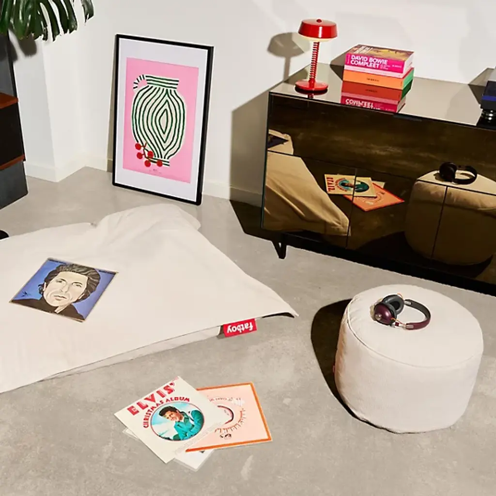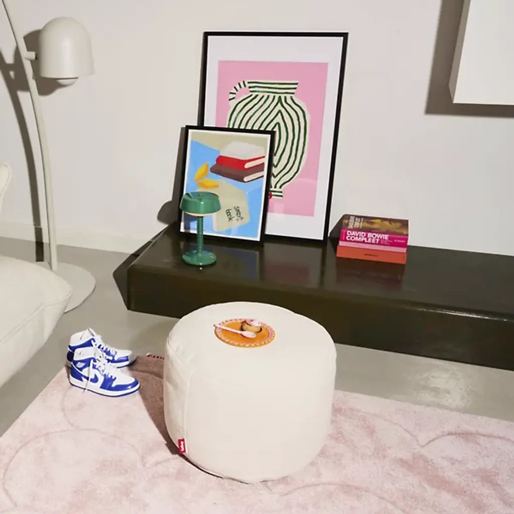 Introducing the Point Recycled Cord Ottoman from Fatboy, the definitive exclamation mark for your living space. Now boasting an upgraded plush, detachable Olefin cover and a non-slip TPE base, this iconic ottoman remains as maintainable as ever with its inner bag feature. Deliberately designed to withstand UV exposure, water, and stains and be easily cleaned, this ottoman adds a contemporary presence with the promise of enduring comfort and resilience for your outdoor area. Upholstered in 100% post-consumer polyester from recycled water bottles, Fatboy's eco-conscious approach ensures that both sustainability and style are on full display, transforming recycled materials into functional and fashionable furnishings.