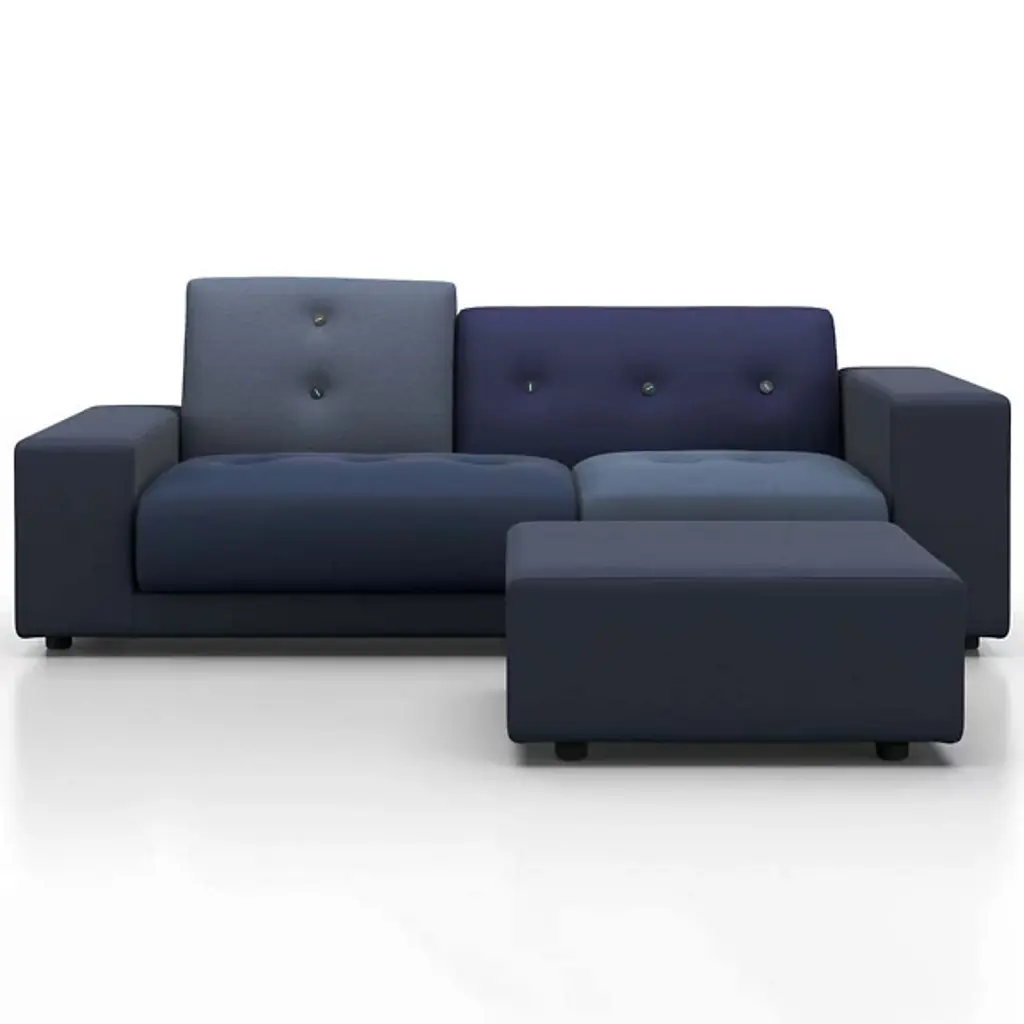 The Polder Ottoman from Vitra references the flatlands of the Dutch landscape in its name and low-sitting design. Creator Hella Jongerius brings a contemporary design aesthetic reflecting her love for colors and surfaces. The ottoman stands with short legs to suggest a floating look. The internal wood frame defined a geometric silhouette with facets as flat as an expansive, flat landscape. Soft foam fills in the frame while fabric wraps it up to give the lower body great comfort. The flat top also serves as a great surface for refreshments and reading materials.