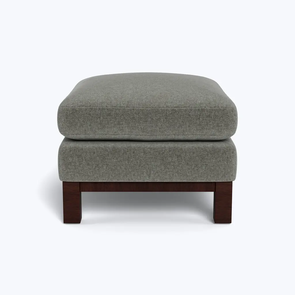 Infuse your home with the contemporary charm of the Prescott Ottoman, an exclusive offering from abc carpet & home. Available in a range of upholstered fabric options, this ottoman is designed to be a versatile addition to your home as it complements any modern interior. The Prescott Collection is distinguished by its blend-down cushions, a mix of dense foam and feather down that is carefully washed to meet hypoallergenic regulations. Crafted with a sustainably sourced Goodwood frame, this ottoman is not only aesthetically pleasing but also eco-conscious, offering peace of mind as you create lasting memories at home. Customize your Prescott Ottoman with Cobble Hill's wide range of color and fabric combinations, offering more than 80 options to suit your unique style and preferences. Whether it's the Crypton Performance Linen or Kelley Performance Velvet, rest assured that each option is durable and easy to clean. Simply select your dream color and fabric scheme, and your custom ottoman will be shipped to your home in 8-10 weeks. Measuring 27 inches in width, 17 inches in height, and 23 inches in depth, this ottoman provides ample space to be used as a footrest, extra seating, or part of a modular configuration of other pieces from the Prescott Collection. Proudly made in the USA, each piece in the Cobble Hill collection reflects a commitment to quality craftsmanship and ethical manufacturing practices. Maintaining the pristine condition of your ottoman is effortless with simple care instructions. Spot clean with mild detergent and vacuum frequently to keep it looking fresh. For a deeper clean, professional services are recommended. With seat cushions wrapped in a blend of 75% fiber and 25% feather/down, and back cushions featuring a fiber and feather blend encased in a channeled down-proof casing, rest assured, every detail of the Prescott Ottoman is designed with your comfort and satisfaction in mind. Create lasting memories at home with the Prescott Ottoman from Cobble Hill.