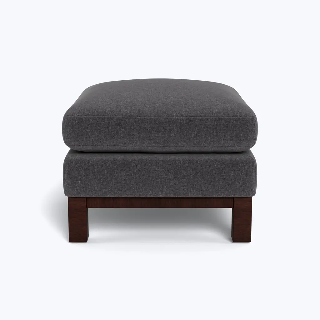 Infuse your home with the contemporary charm of the Prescott Ottoman, an exclusive offering from abc carpet & home. Available in a range of upholstered fabric options, this ottoman is designed to be a versatile addition to your home as it complements any modern interior. The Prescott Collection is distinguished by its blend-down cushions, a mix of dense foam and feather down that is carefully washed to meet hypoallergenic regulations. Crafted with a sustainably sourced Goodwood frame, this ottoman is not only aesthetically pleasing but also eco-conscious, offering peace of mind as you create lasting memories at home. Customize your Prescott Ottoman with Cobble Hill's wide range of color and fabric combinations, offering more than 80 options to suit your unique style and preferences. Whether it's the Crypton Performance Linen or Kelley Performance Velvet, rest assured that each option is durable and easy to clean. Simply select your dream color and fabric scheme, and your custom ottoman will be shipped to your home in 8-10 weeks. Measuring 27 inches in width, 17 inches in height, and 23 inches in depth, this ottoman provides ample space to be used as a footrest, extra seating, or part of a modular configuration of other pieces from the Prescott Collection. Proudly made in the USA, each piece in the Cobble Hill collection reflects a commitment to quality craftsmanship and ethical manufacturing practices. Maintaining the pristine condition of your ottoman is effortless with simple care instructions. Spot clean with mild detergent and vacuum frequently to keep it looking fresh. For a deeper clean, professional services are recommended. With seat cushions wrapped in a blend of 75% fiber and 25% feather/down, and back cushions featuring a fiber and feather blend encased in a channeled down-proof casing, rest assured, every detail of the Prescott Ottoman is designed with your comfort and satisfaction in mind. Create lasting memories at home with the Prescott Ottoman from Cobble Hill.