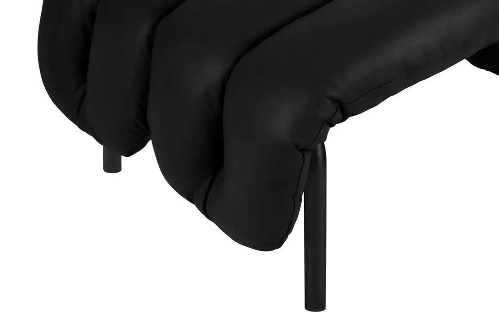 The detachable upholstery of the Puffy Lounge Chair is fat and plump, its generous shape spills freely over the sides of a tubular steel frame which, in stark contrast, is hard-lined and strong. The two key elements of this seating design by Faye Toogood are in purposeful and playful juxtaposition. The elementary frame is inspired by the rational structure of classic modernist design, whilst the extravagant quilt-like upholstery warmly embraces and envelopes, is comforting and reassuring. The Puffy Chair frame is available in powder-coated or sand-blasted steel finishes and a choice of thick canvas, chunky bouclé or luxurious leather upholstery.