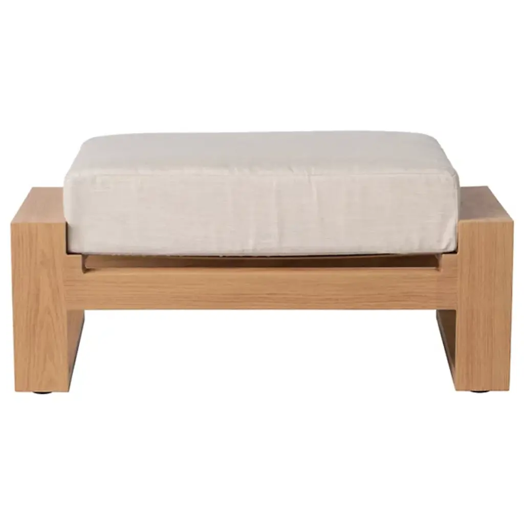 The Pursuit Outdoor Ottoman from Lloyd Flanders adapts to many open-air settings with its purposeful, stable design. Peter Homestead created this piece with a deceptively simple look that delivers exceptional comfort. The cushion construction includes a substantial foam core wrapped in polyester layered fill, all enclosed in moisture-resistant 100% Sunbrella Acrylic fabric. Weather fluctuations won't affect the all-aluminum frame, which resists expansion and contraction. The faux-wood finish mimics genuine teak aesthetics while eliminating traditional maintenance concerns. Its fully welded, powder-coated structure ensures years of reliable use.