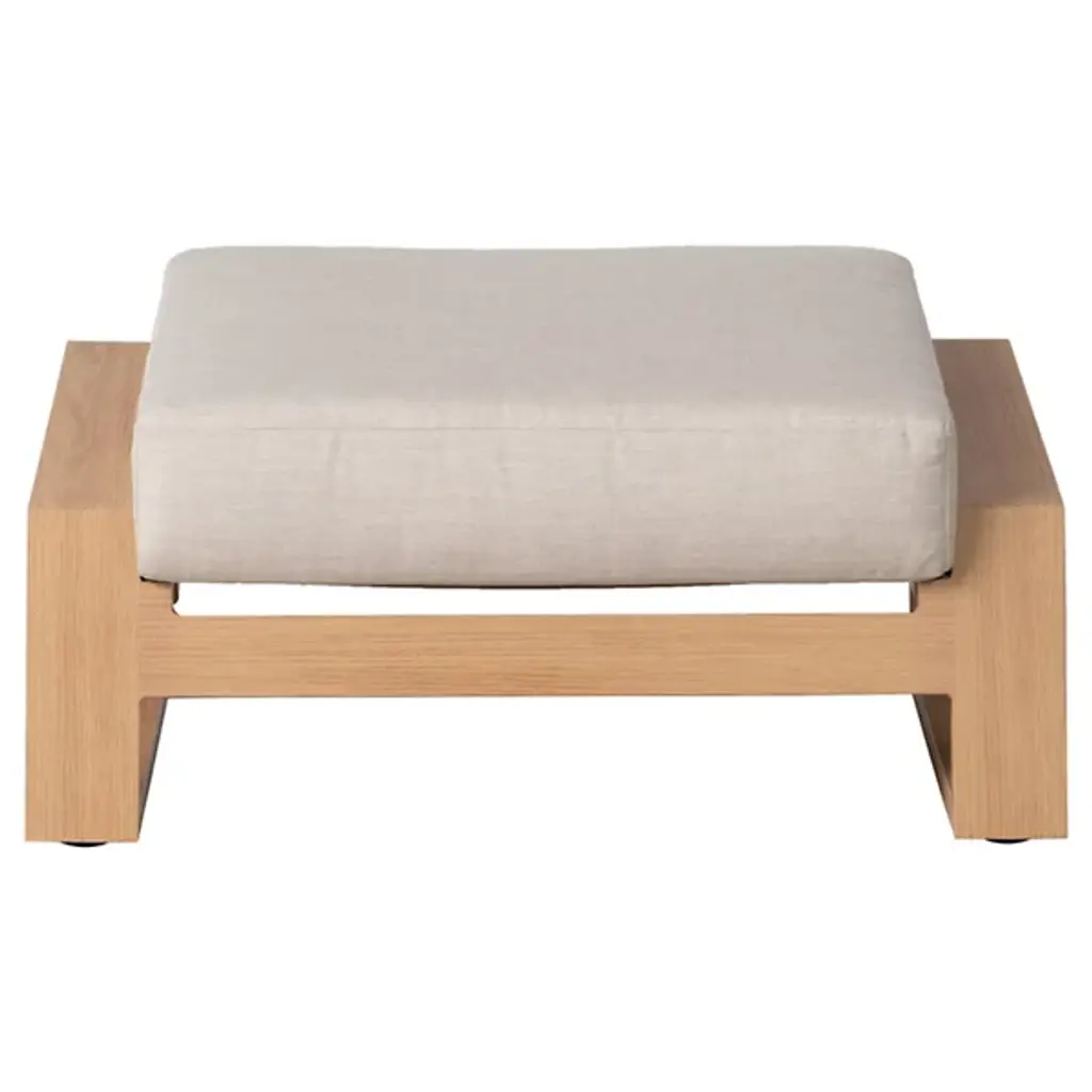 The Pursuit Outdoor Ottoman from Lloyd Flanders adapts to many open-air settings with its purposeful, stable design. Peter Homestead created this piece with a deceptively simple look that delivers exceptional comfort. The cushion construction includes a substantial foam core wrapped in polyester layered fill, all enclosed in moisture-resistant 100% Sunbrella Acrylic fabric. Weather fluctuations won't affect the all-aluminum frame, which resists expansion and contraction. The faux-wood finish mimics genuine teak aesthetics while eliminating traditional maintenance concerns. Its fully welded, powder-coated structure ensures years of reliable use.
