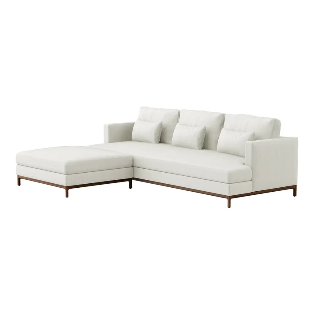 Named after the traditional Chinese concept of a "small sleep" at noon, the Qi Sofa draws inspiration from the Luohan Chuang - a dual - purpose bench for sitting and sleeping. Blending modern versatility with the minimal style of Jean-Michel Frank, it combines a wooden structural base with a padded platform and cushions for comfort in both seated and reclined positions. The collection comprises one , two , and three-seater sofas in wood with textile upholstery, suitable for diverse living spaces. Qi seamlessly infuses a subtle Asian aesthetic into contemporary contexts.
