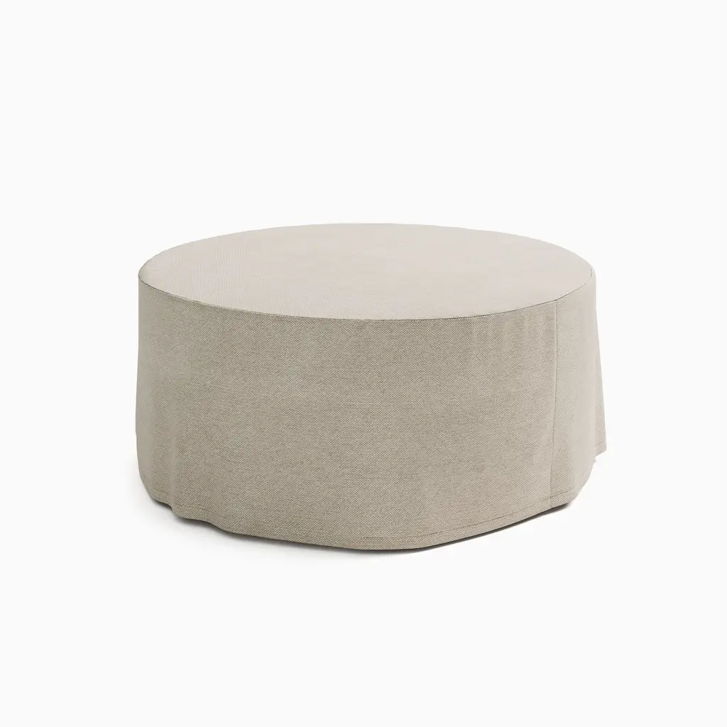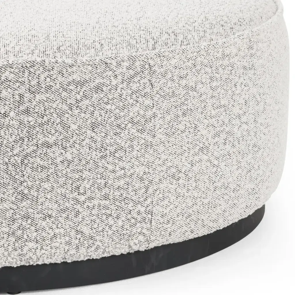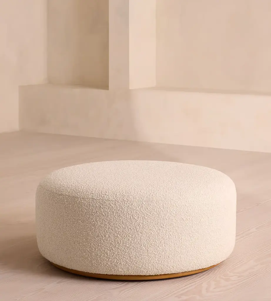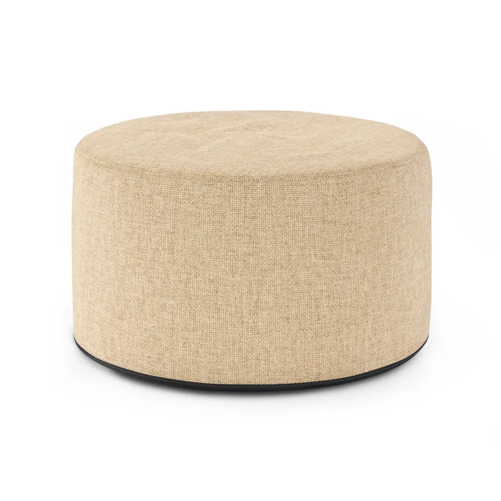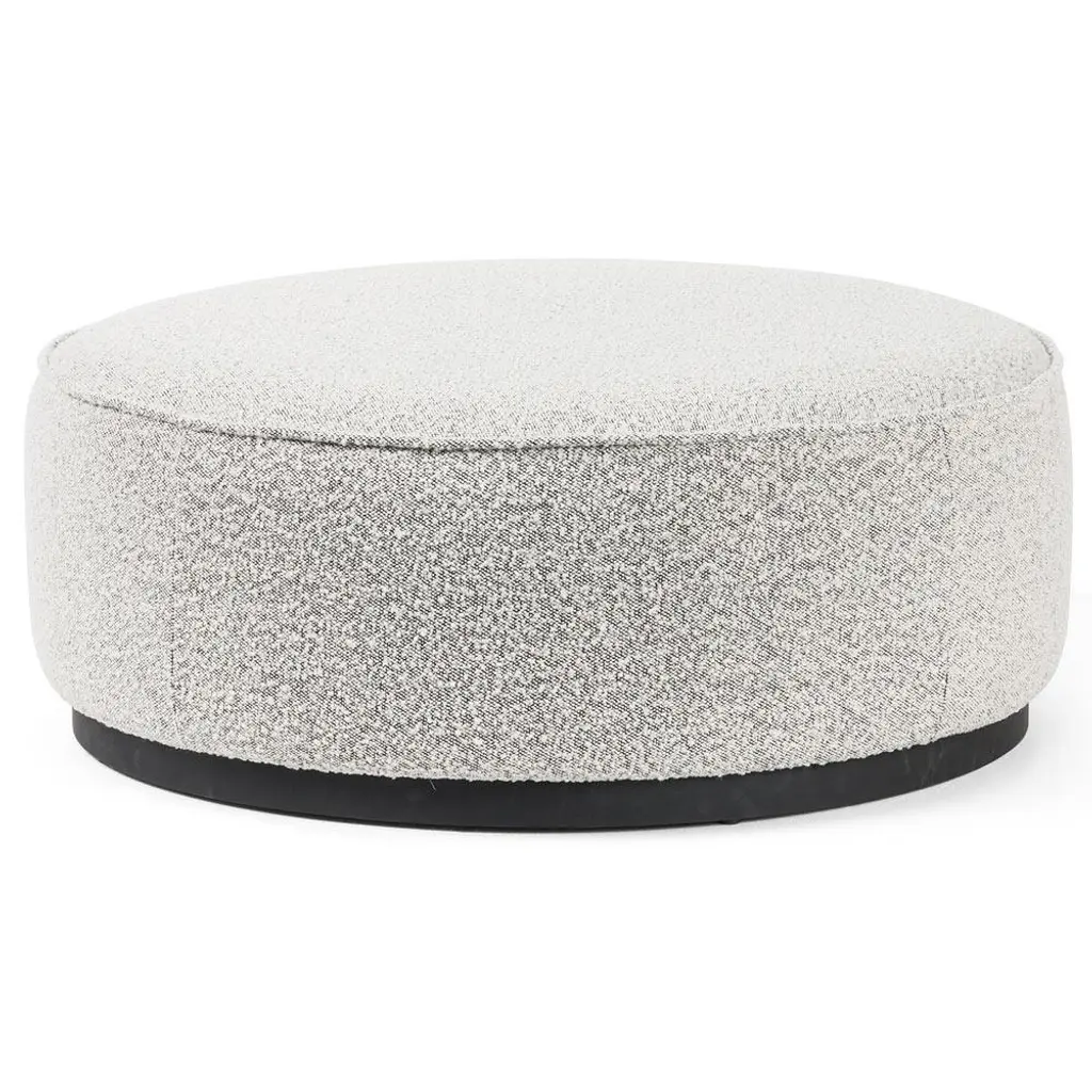 Elevate your living space with this round ottoman. We love how the dark, solid wood base perfectly contrasts the lightly-colored upholstery up top. Plus, its oversized, flat surface is just right for holding a tray of cocktails or snacks. Style this versatile must-have alongside your sofa for a place to prop up your feet, or swap it in for your coffee table (and wait for the compliments to roll in).