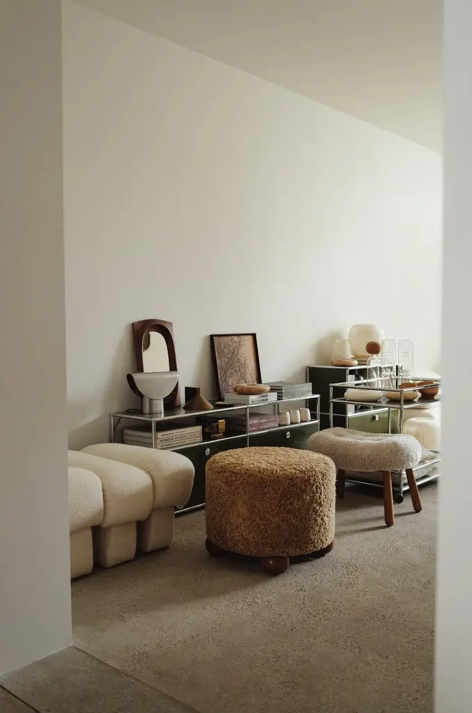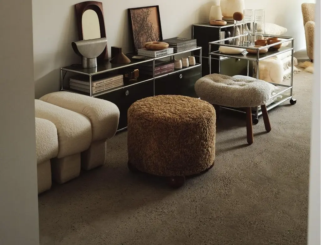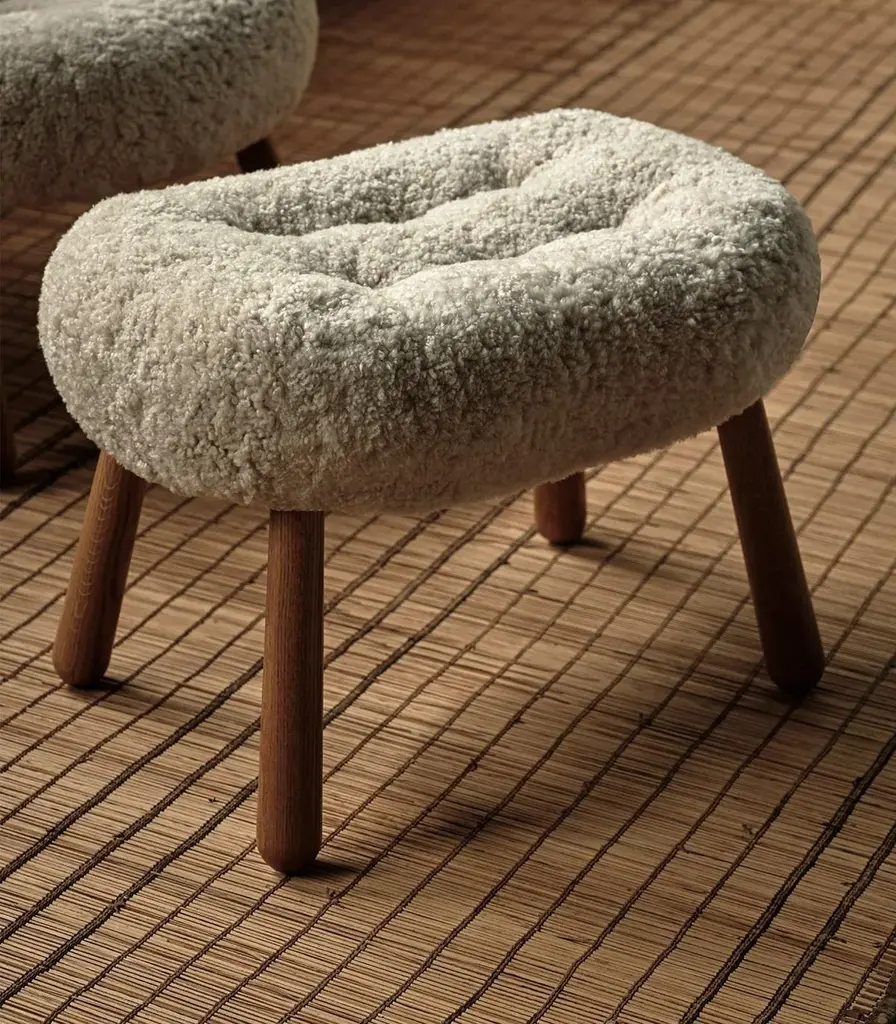 Re-Edition Of Arnold Madsen Sheepskin Clam Ottoman By Dagmar