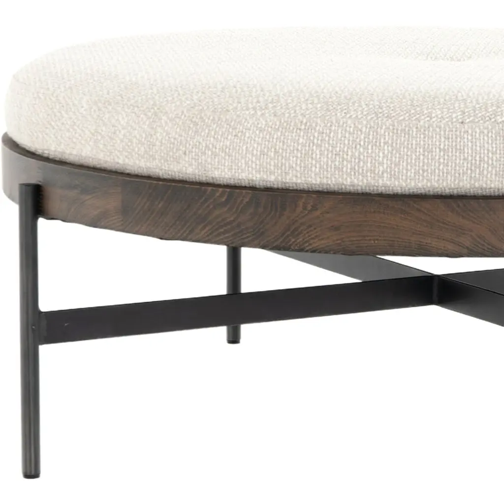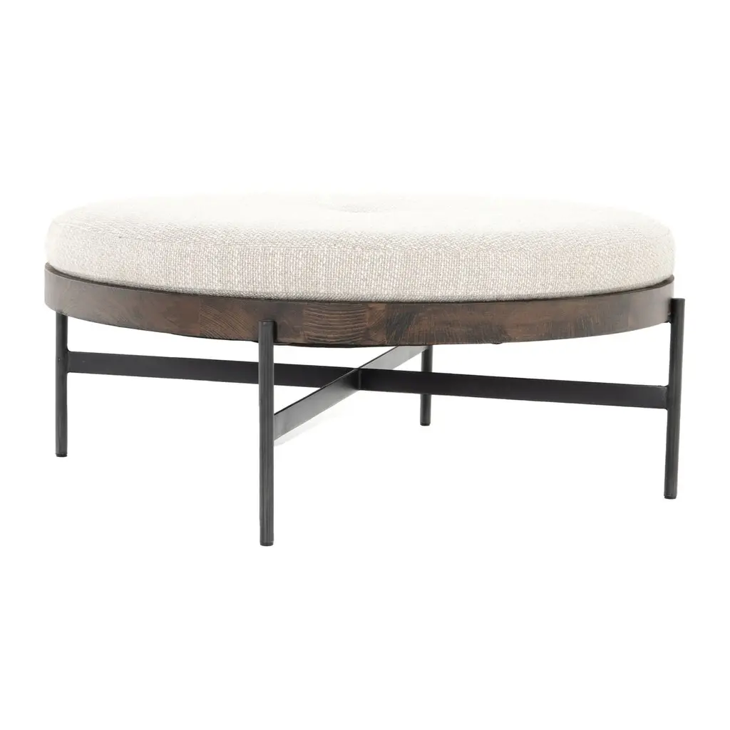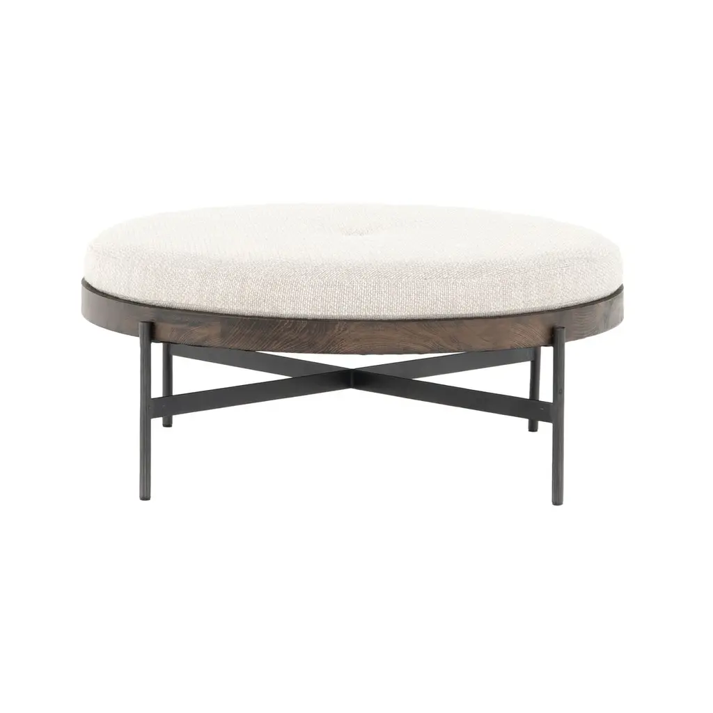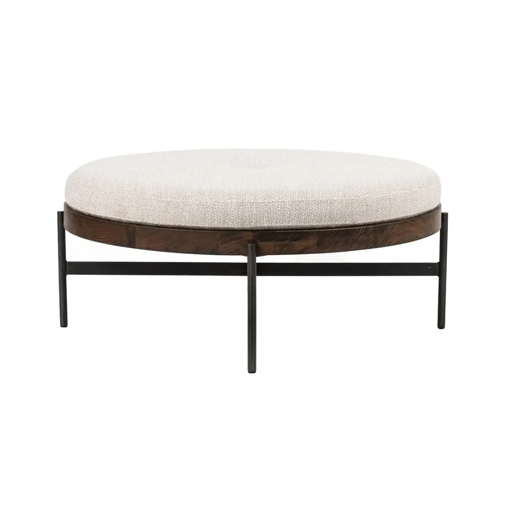 Stylish versatility defines the Remi Large Ottoman. An airy base of gunmetal-finished iron supports rounded beech wood, offering a sophisticated touch to any space. Perfectly scaled, this ottoman provides additional seating or can serve as an extra surface when topped with a tray, making it a functional and elegant addition to your home.