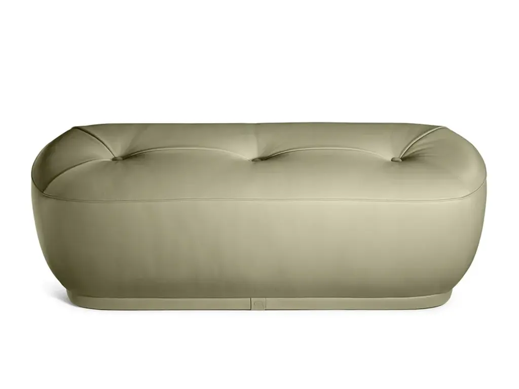 The Rico series welcomes curves and volumes into a classic design defined by soft lines and an embracing expression. The ottoman is a multipurpose piece of furniture perfect for any ensemble, whether you are in need of a side table, a footrest or a space seat in the living room. The curvaceous nature of the series adds a modern union of comfort and elegance to any room and makes you feel drawn into its motherly embrace. This item is part of our Made to Order customization concept. The upholstery for this item can be selected from a range of high-quality fabrics in different colors and patterns to create your custom piece of furniture.