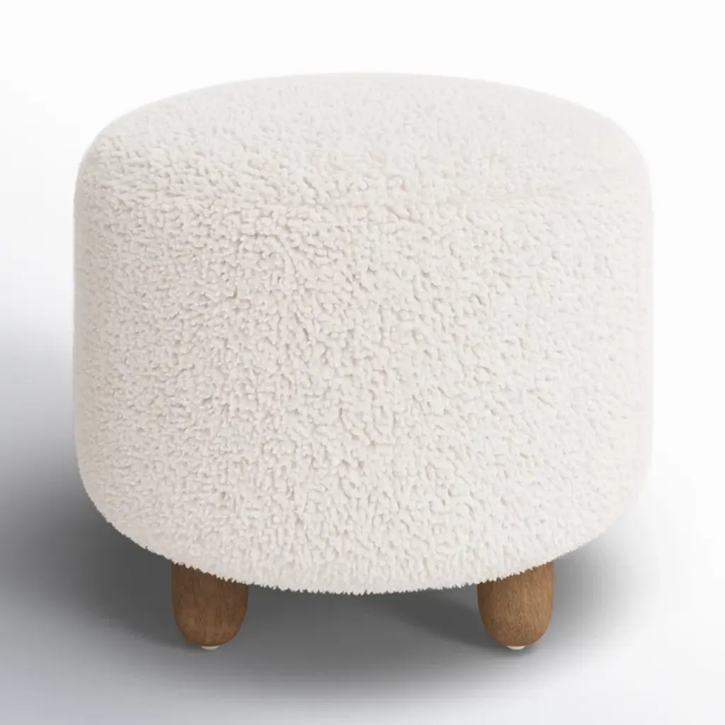 Risco 23" Round Shearling Footstool Ottoman