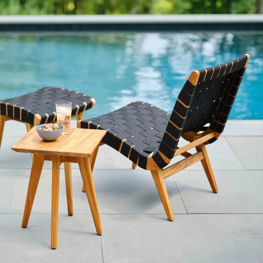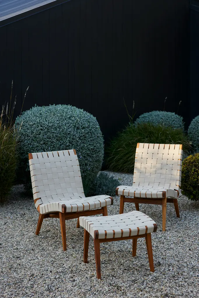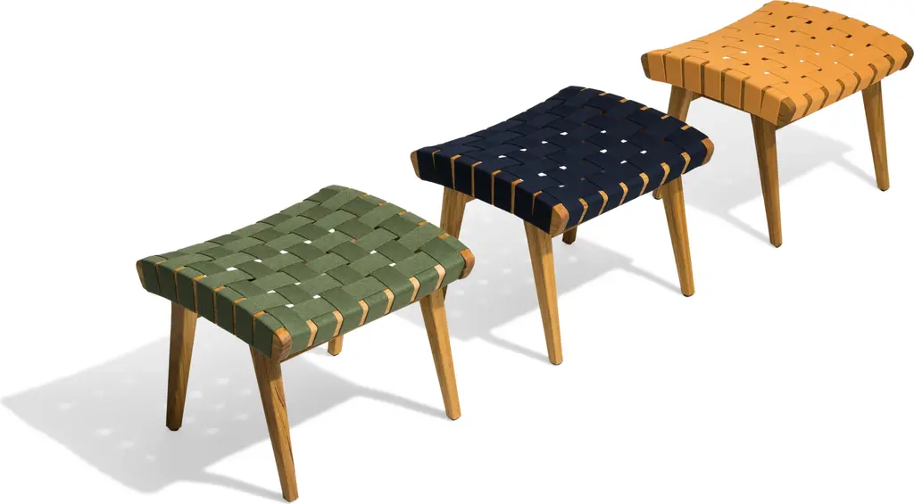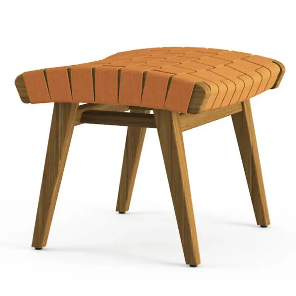 Designed in 1942, the Risom Ottoman was one of the first pieces commissioned by Knoll, and three-quarters of a century later, the company expanded the collection for outdoor use. An oiled teak frame and durable Sunbrella webbing have readied this classic for a life outside.