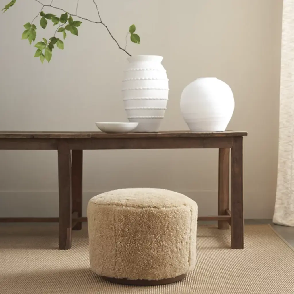 The Rocco Accent Ottoman from Rowe Furniture is a luxurious statement piece meticulously crafted in the USA to elevate your living space with contemporary elegance. Wrapped in sumptuous New Zealand sheepskin, this ottoman offers unparalleled comfort and sophistication. Its plush texture invites you to relax and unwind, while its rounded appearance adds a touch of modernity to your room. This accent ottoman seamlessly combines style and versatility, serving as a footrest or a chic centerpiece in your décor.