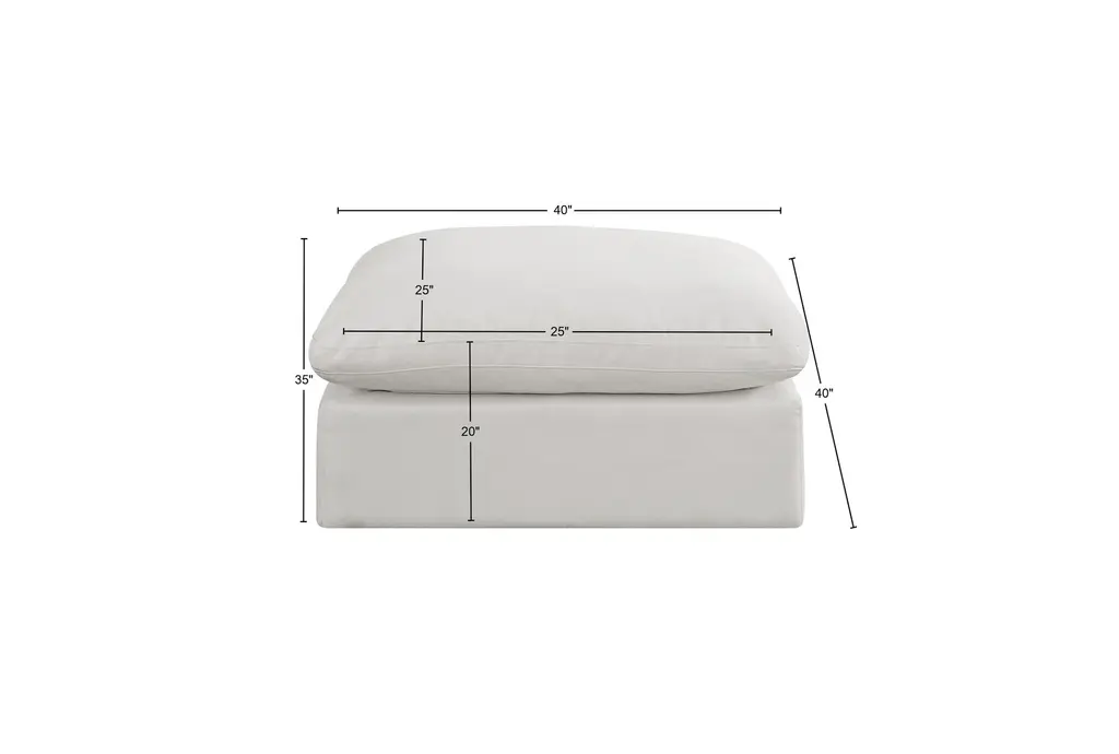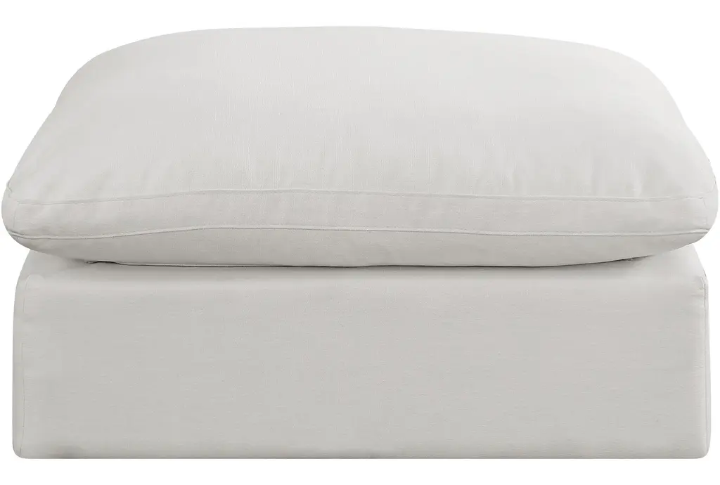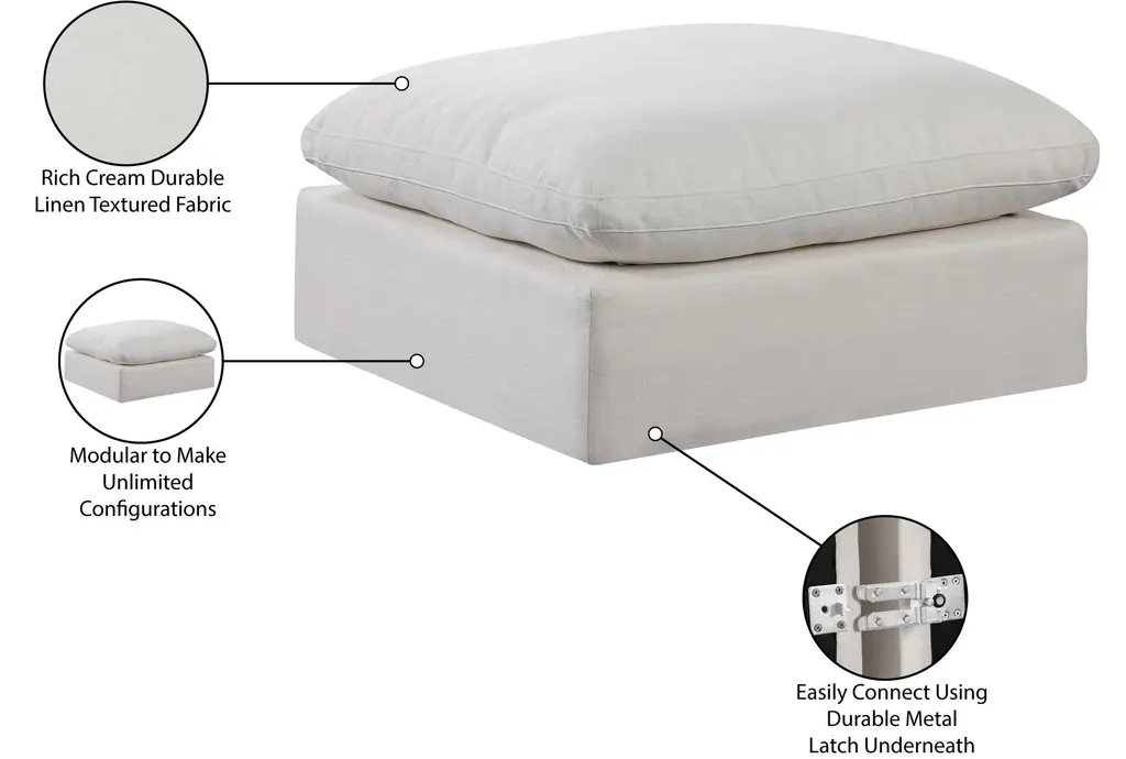 Rolo Comfy Cream White Linen Textured Fabric Upholstered Modular Ottoman | Rectangle
